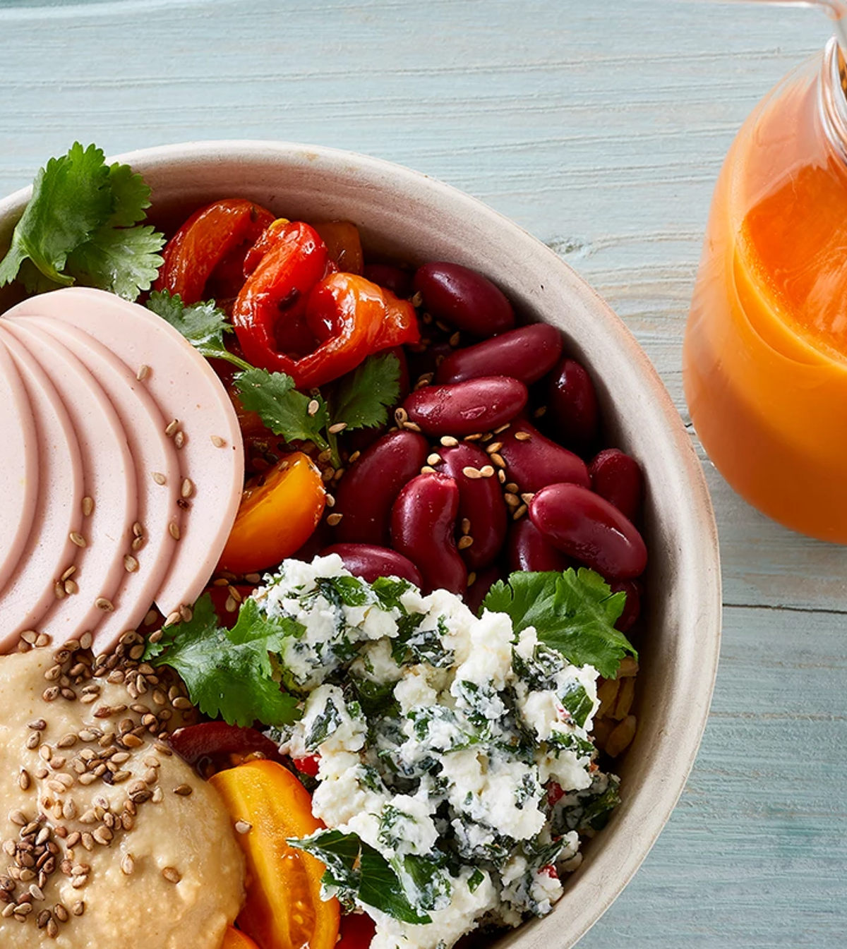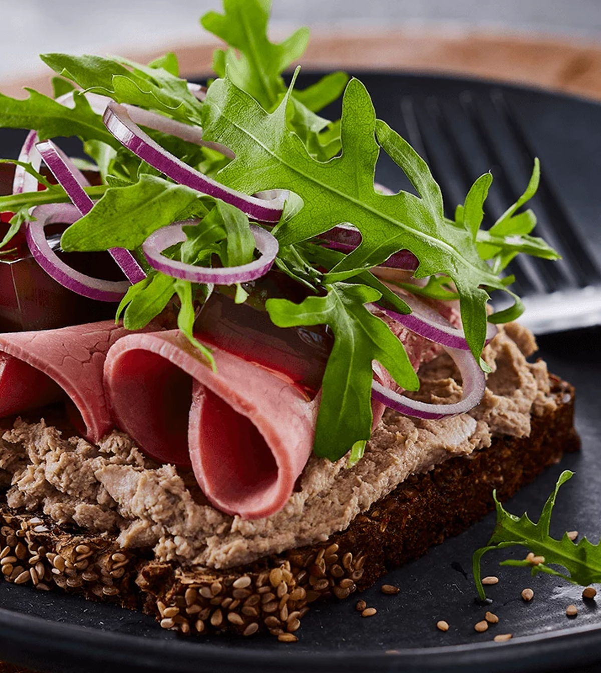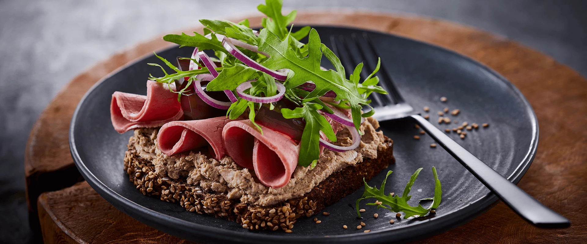 Fuldkornswrap med hamburgerryg, kalkunbacon og spinat