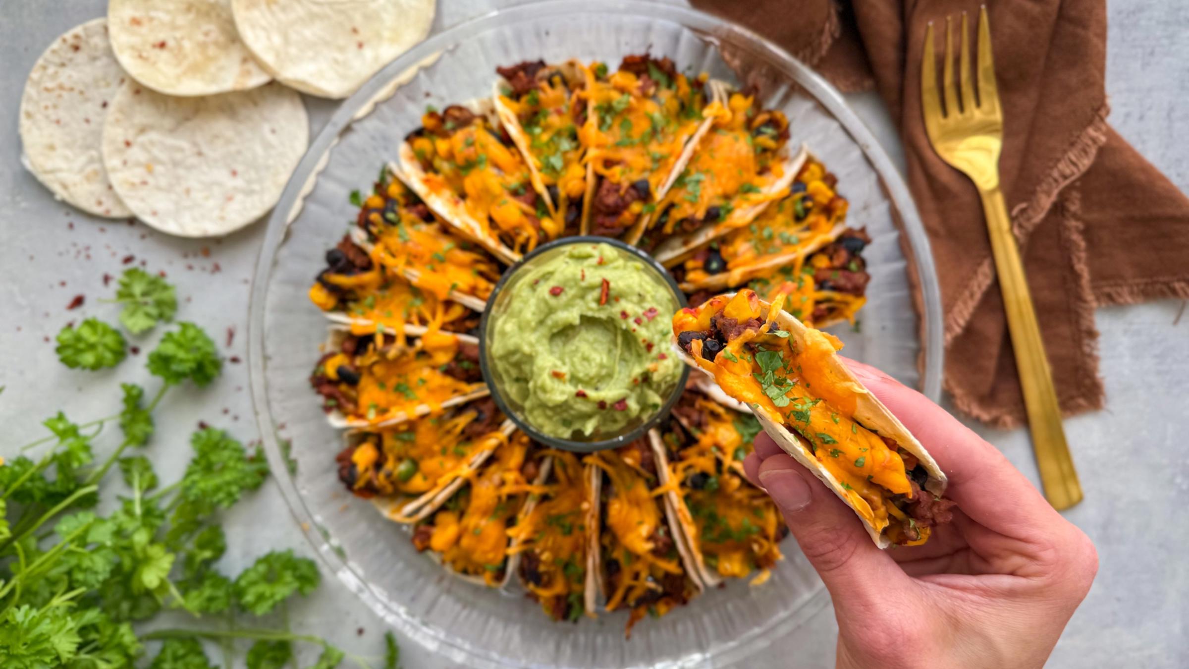 Grønne tacos med filetstrimler og spicy dip