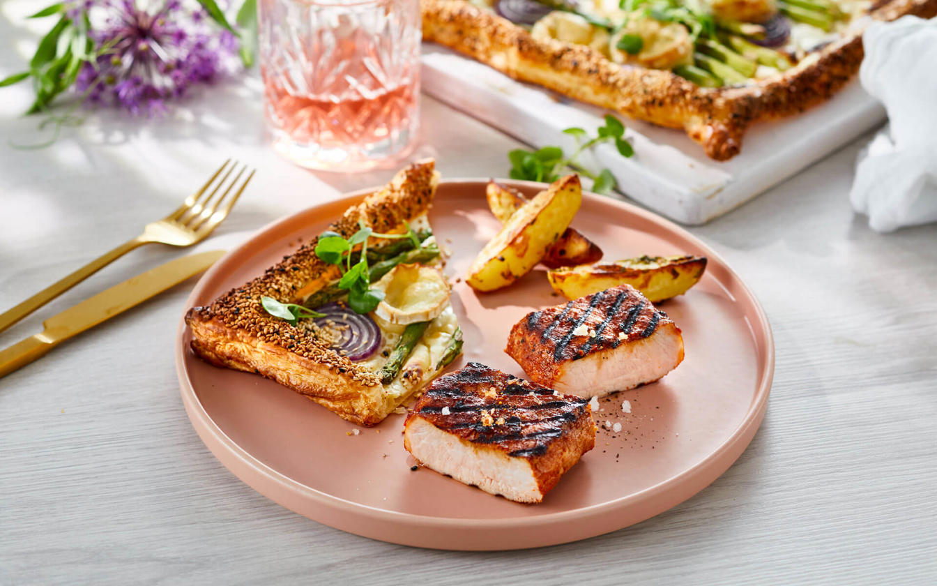 Nakkefilet med asparges i butterdej og bagte kartofler