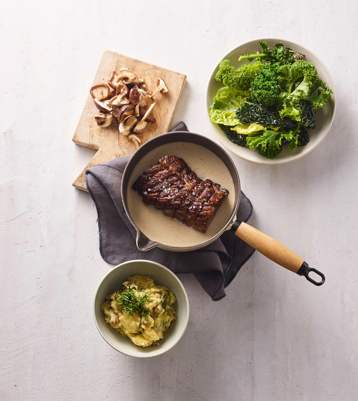 Oksesteg i stegeso er den perfekte ret, når du vil forkæle familien eller gæster med klassisk, langtidsstegt komfortmad. Når stegen simrer i flere timer omgivet af urter, grønt og bouillon, får du et mørt og saftigt resultat – med en dyb smag, som kun en god simreret kan give.