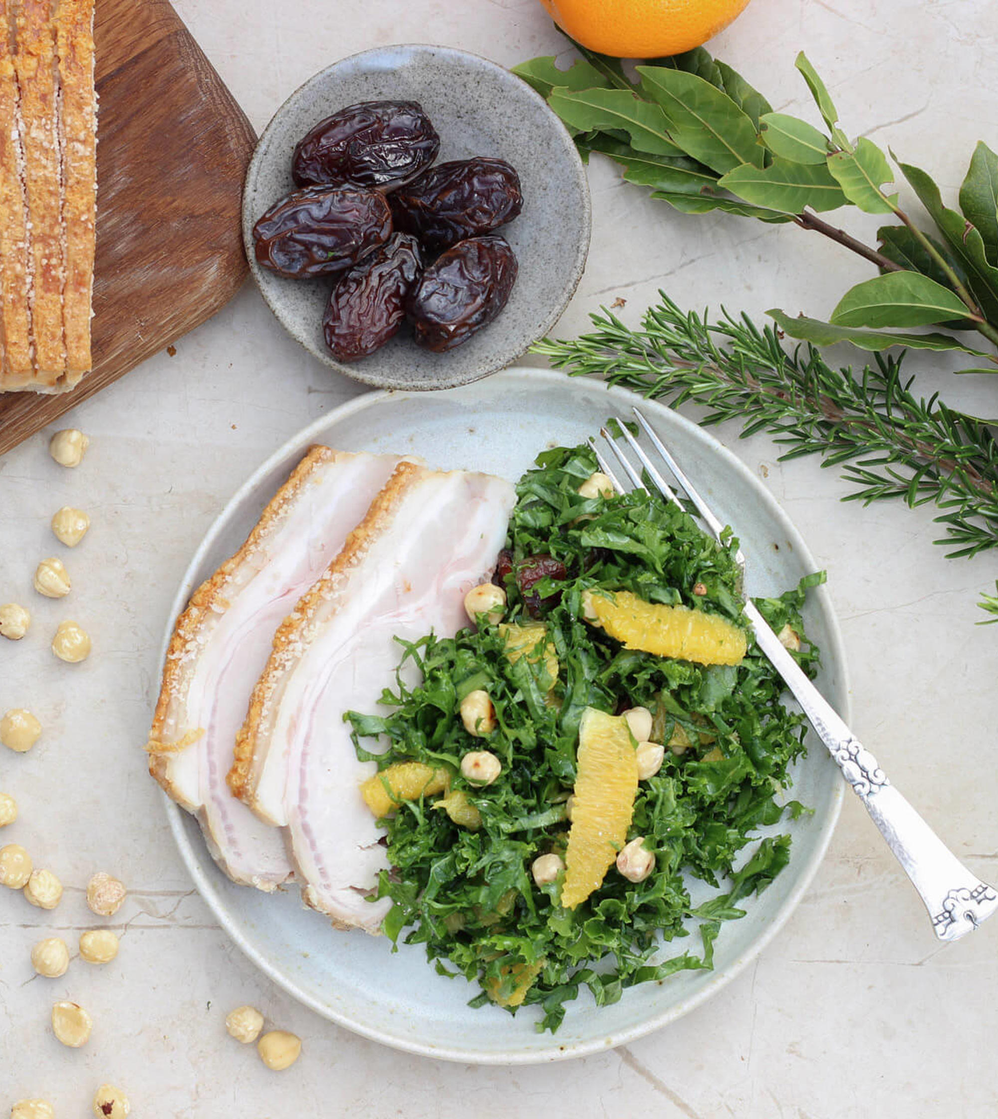 Flæskesteg med grønkålssalat