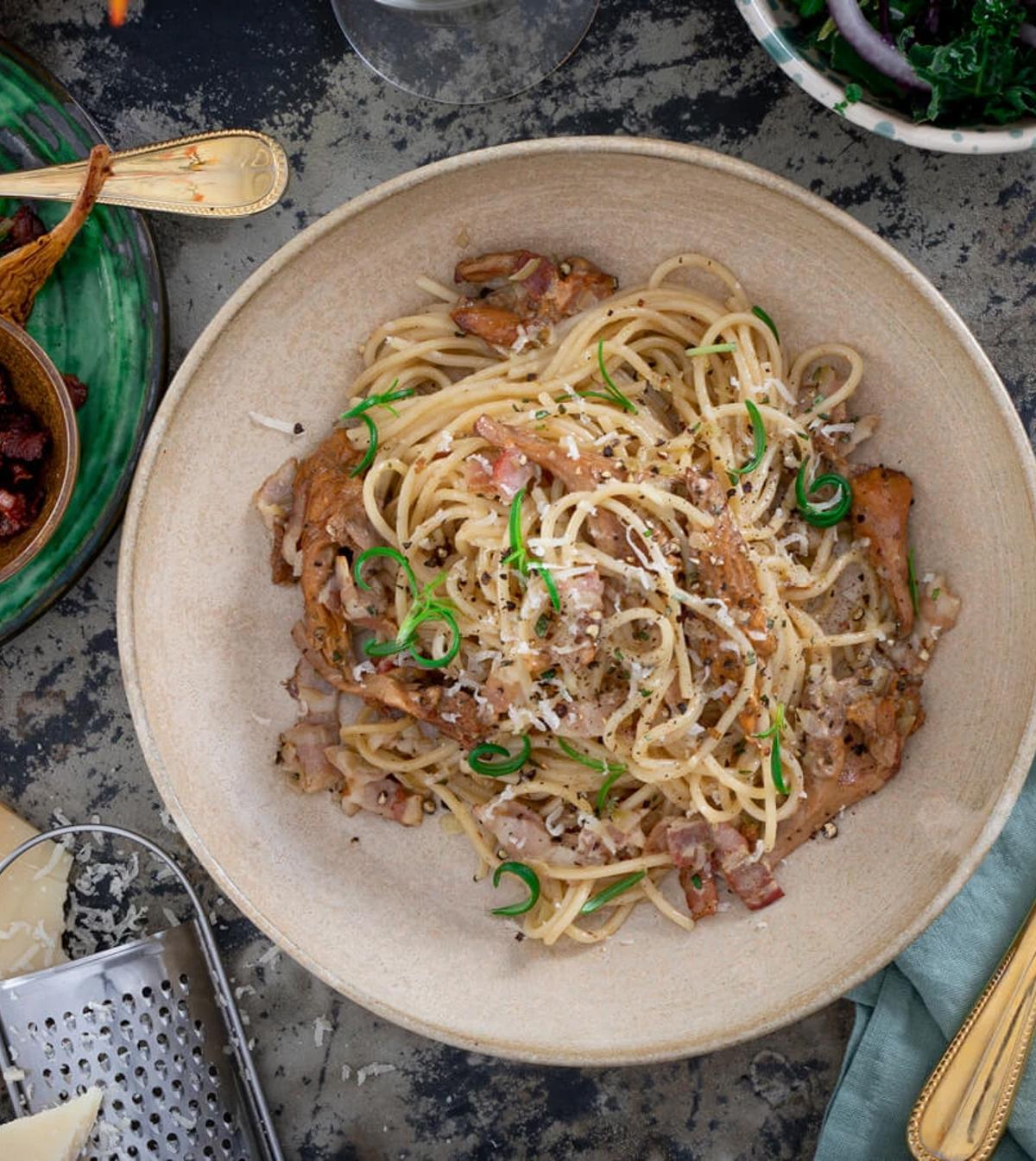 Denne opskrift på en cremet pastaret byder på en skøn blanding af saftige svampe, sprødstegt bacon og frankfurtere i en smagfuld flødesauce. Pastaretten er nem og kan laves på bare 30 minutter. Den er derfor perfekt til de dage, hvor du vil forkæle dig selv og dine nærmeste med noget ekstra lækkert uden at bruge lang tid i køkkenet.