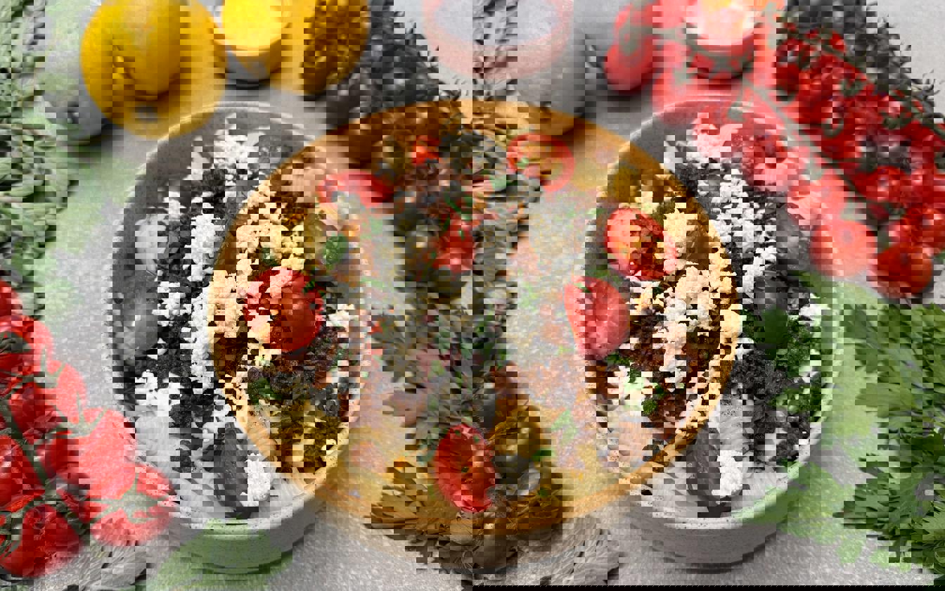 - Har du ikke cherrytomater, kan du sagtens bruge andre grøntsager – fx peberfrugt eller majs. Tilsæt dem rå eller vend dem hurtigt på panden, alt efter hvad du foretrækker.