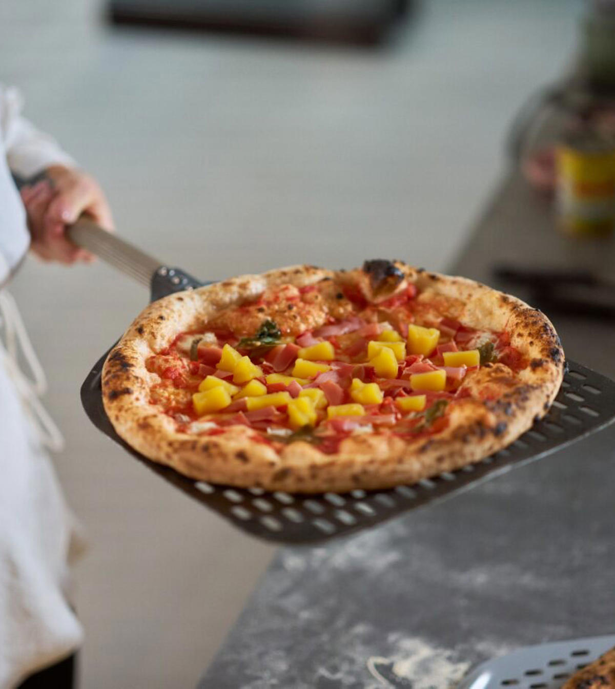 - I almindelig ovn: 7-8 min. ved 275 grader (varmluft). Brug evt. en varm bagesten for at opnå en sprød bund.