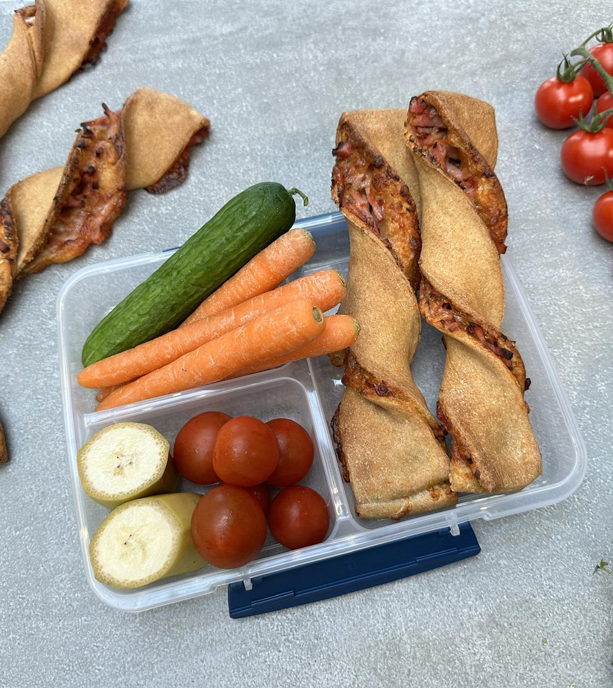 Pizzapakker er en enkel og velsmagende løsning, når du har brug for en hurtig idé til madpakken eller en nem snack. Med kun 5 ingredienser og 10 minutters forberedelse er de lette at lave – og lige så lette at tage med på farten.