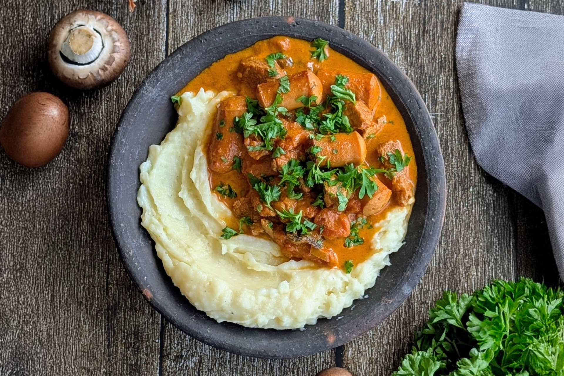 Pølsegryden her er med garanti et hit blandt de yngste i familien. Hvis ris dog ikke falder helt i børnenes smag, kan de sagtens skiftes ud med pasta for at gøre den ekstra børnevenlig. Vi har i opskriften ikke specificeret hvilke pølser, der skal bruges – her kan du vælge din yndlingspølse eller evt. rester fra dagen før. Ellers er en god gryderet at lune sig på i de kolde måneder sjældent en dårlig ide. I kombination med tomat puréen og creme fraichen bliver retten også ekstra cremet og lækker.