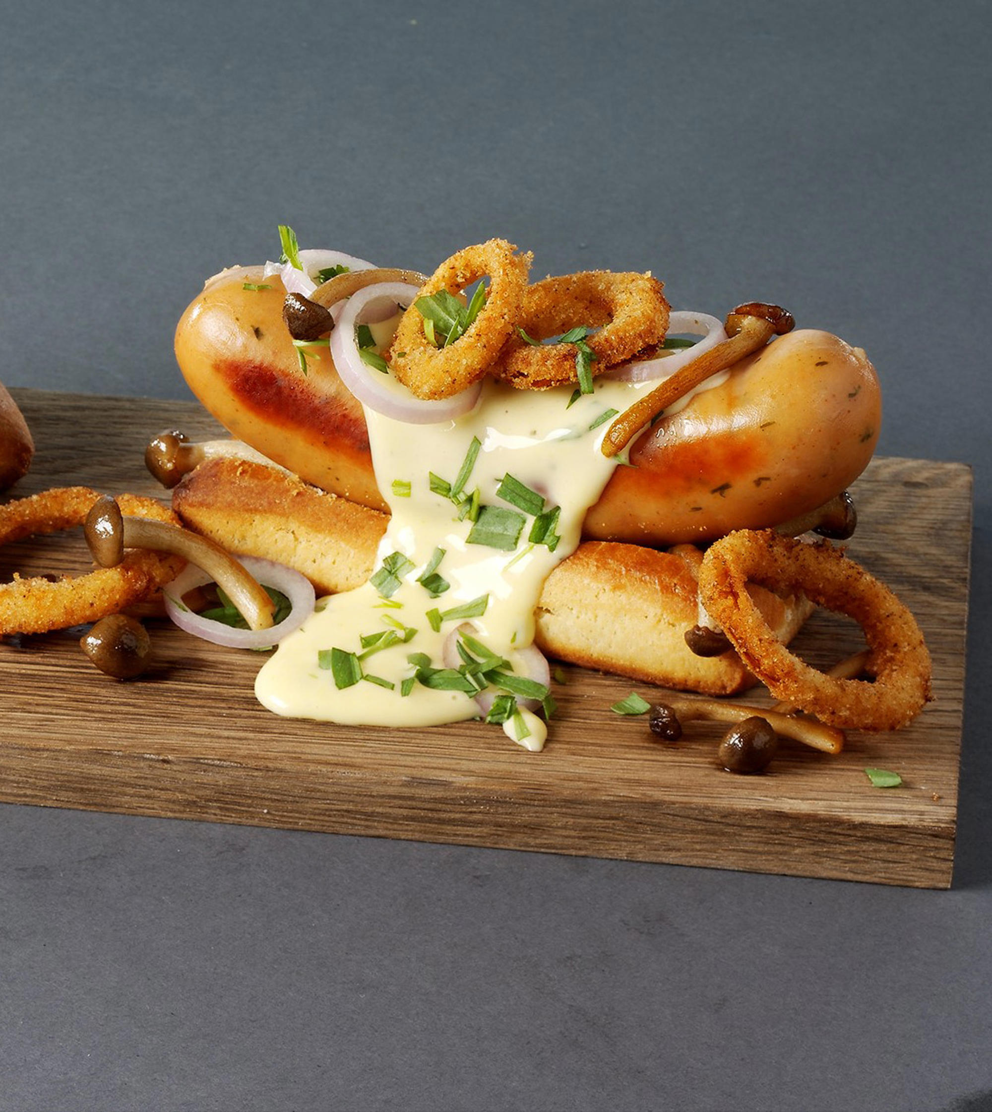 Gourmet hotdog med hjemmelavet luksus hotdogbrød