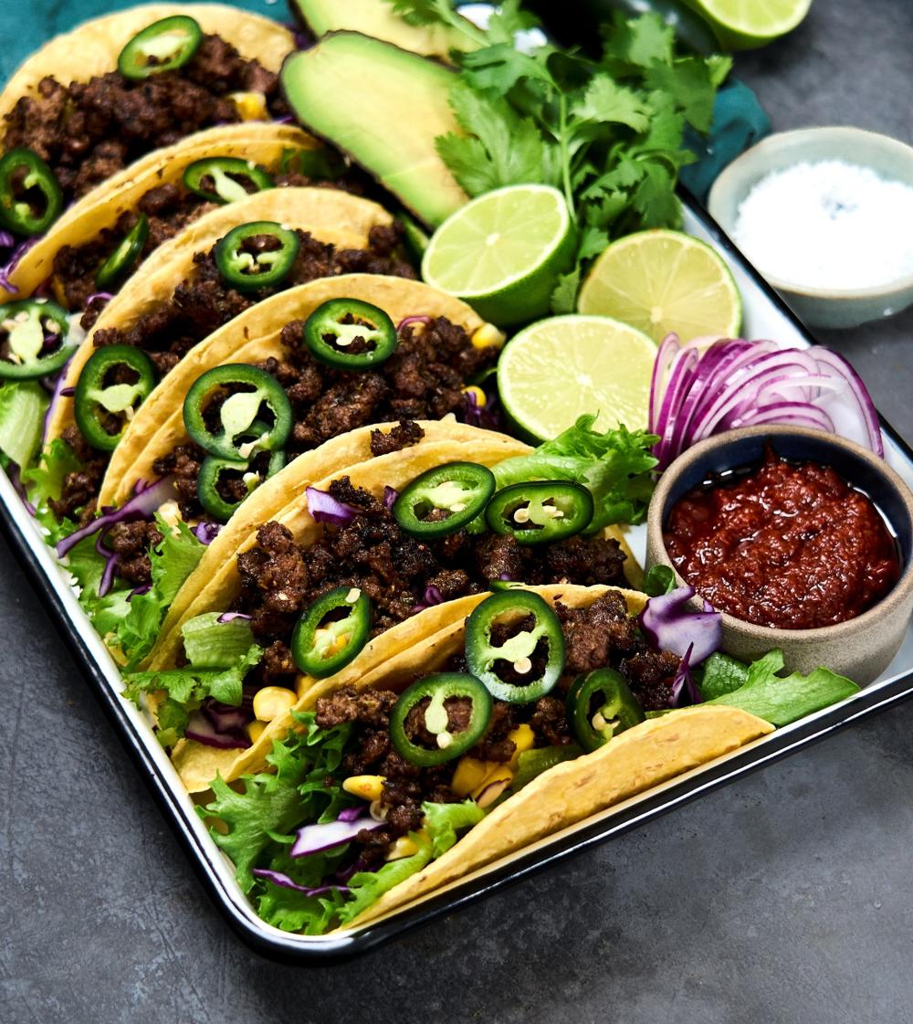 Bacon steaks med grillede kartofler, majs og tzatziki