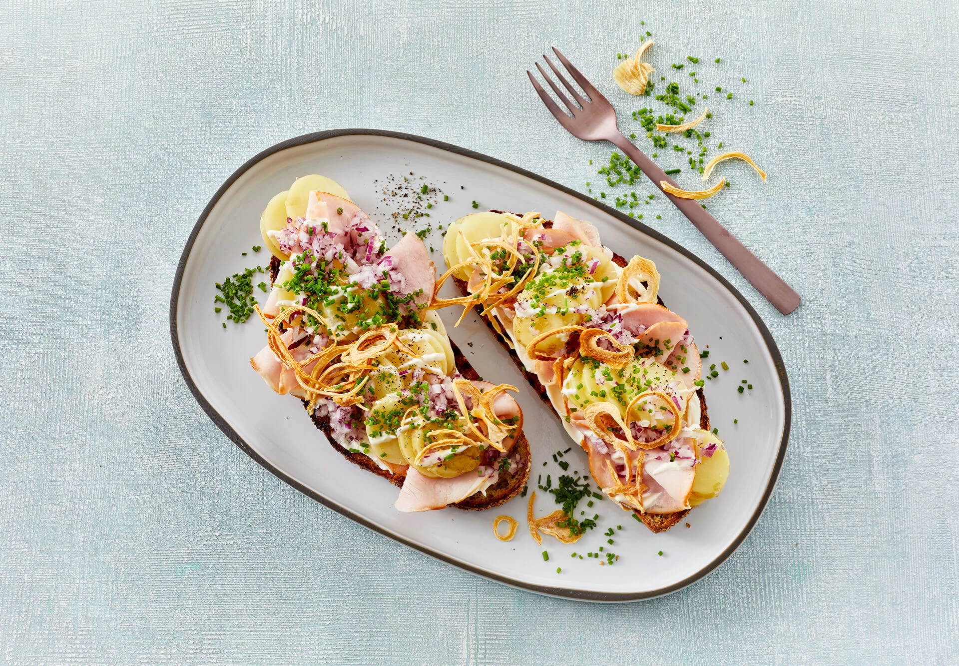 Ristet surdejsbrød med hamburgerryg