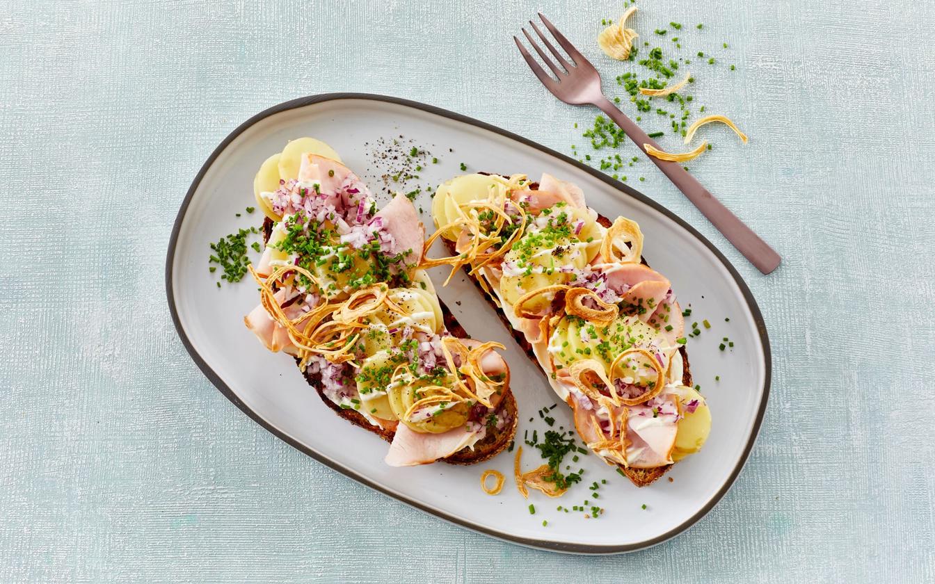 Denne ret fungerer perfekt som en hurtig frokost, et hyggeligt mellemmåltid eller som noget ekstra lækkert på brunchbordet. Kombinationen af varmt brød og skiver af hamburgerryg gør det til noget, både børn og voksne sætter pris på — uden at det kræver meget forberedelse