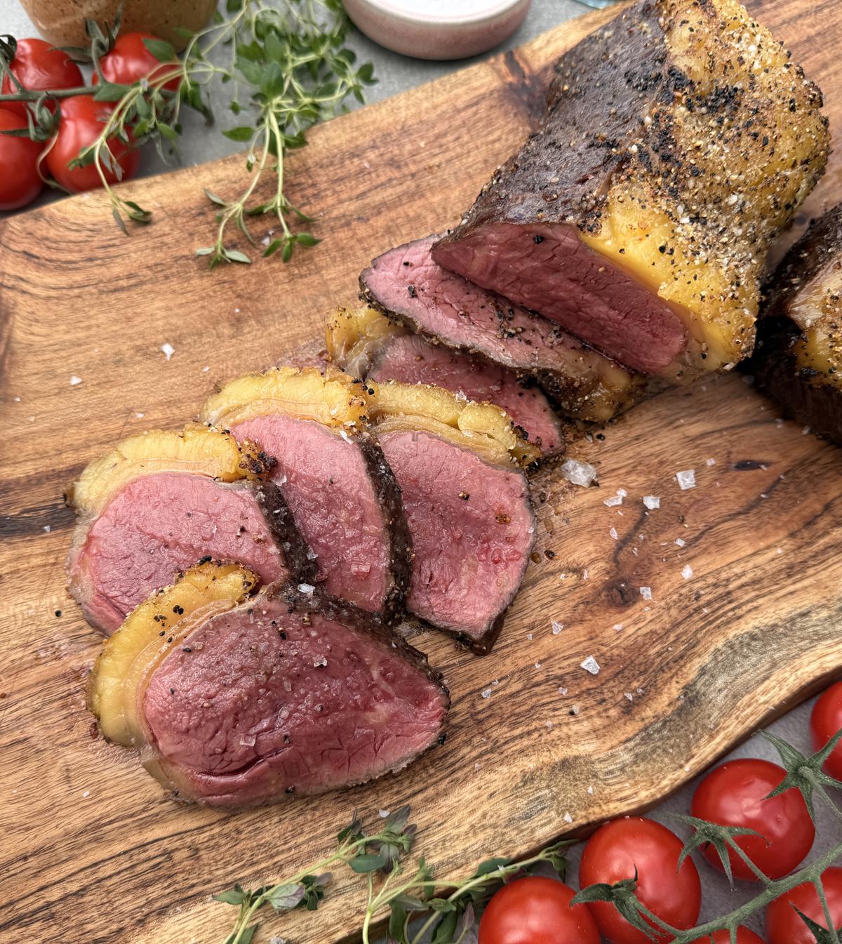 Vores anbefaling: Kødet grilles ved indirekte varme og tages af ved 54 grader og vil stige til omkring 57 grader under hviletiden.