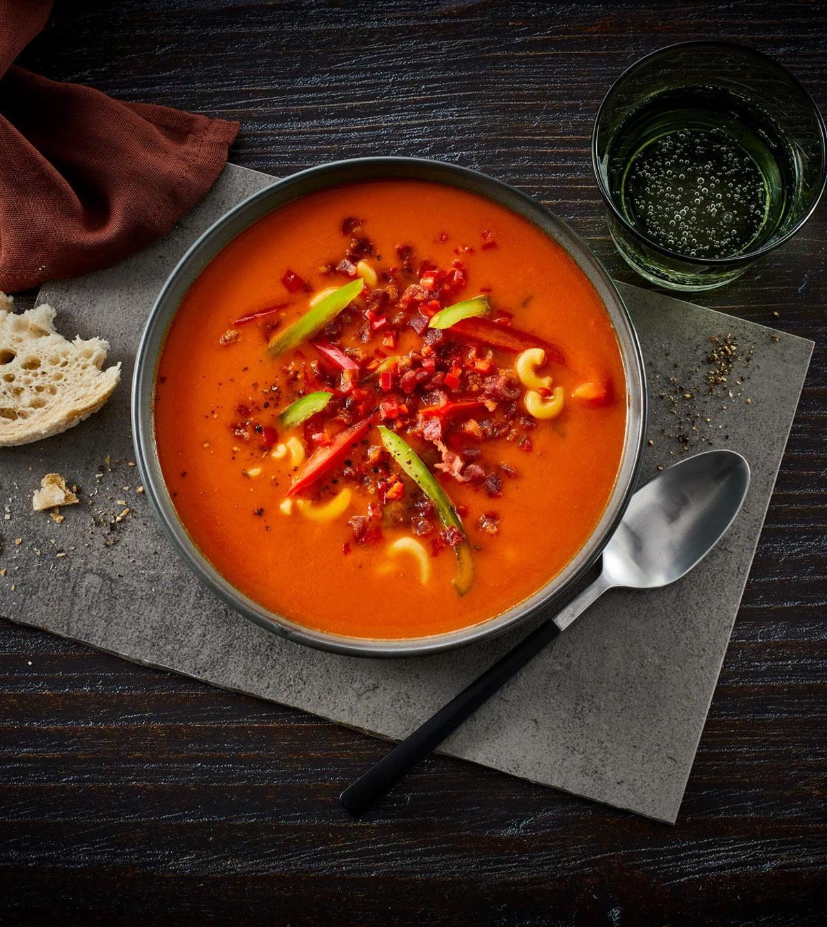 Rodfrugtsuppe med hvedekerner og bacon