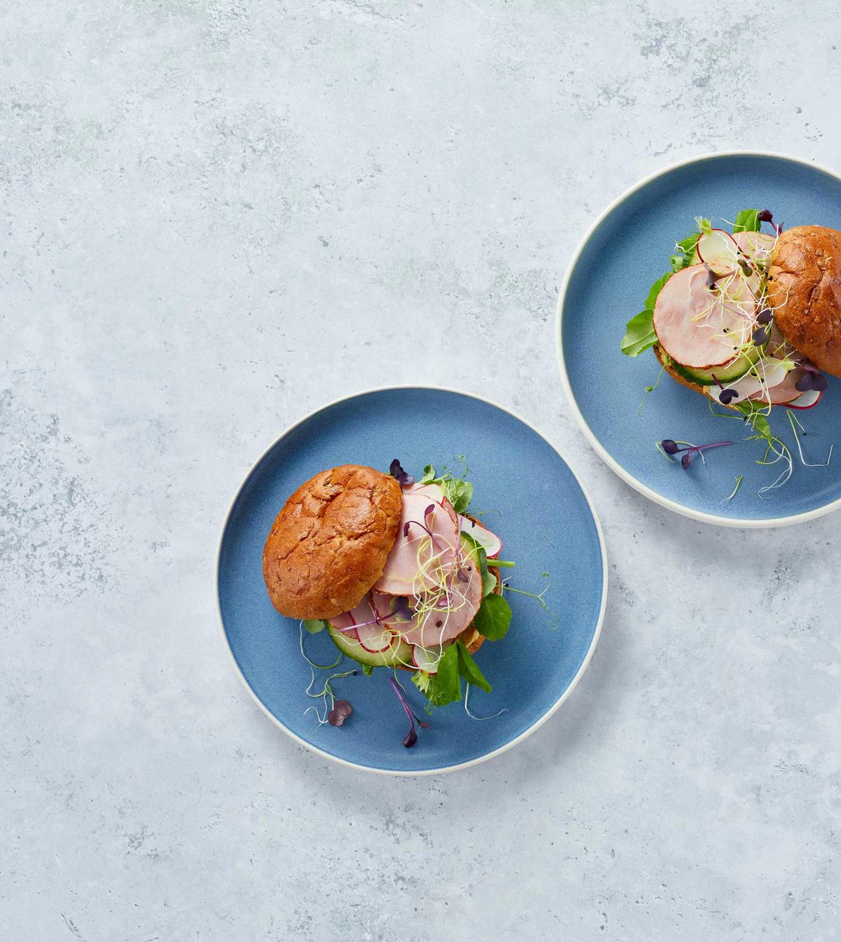 Rugbrødsbolle med ærtehummus og Veggie Sandwich Skiver