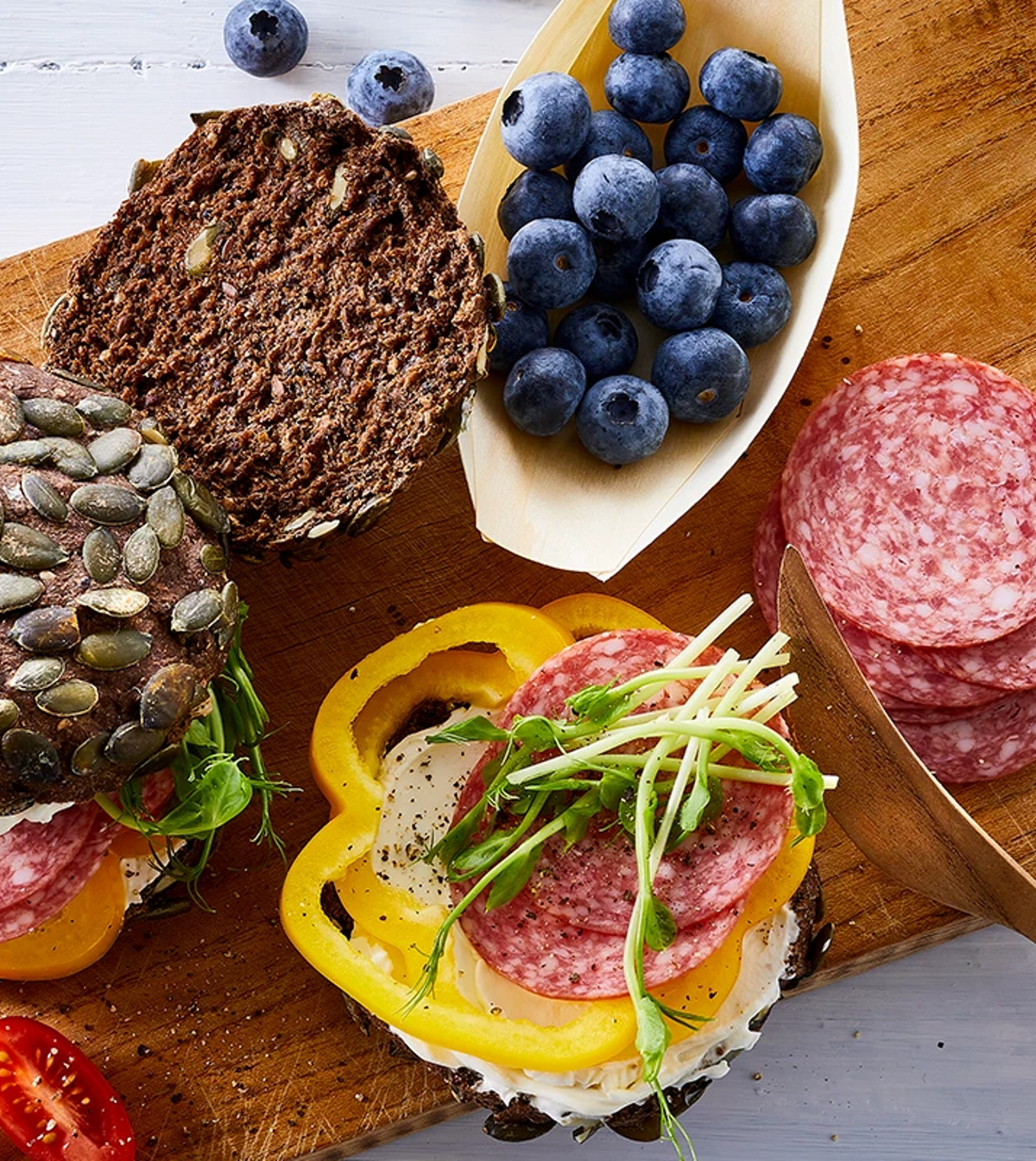 Rugbrødsbolle med skinke er en enkel og hurtig løsning til frokost eller madpakken. Her bruges sandwichskiver med et strejf af peber og paprika fra Den Grønne Slagter – kombineret med hjemmelavet hummus og friske grøntsager. Klar på 15 minutter.