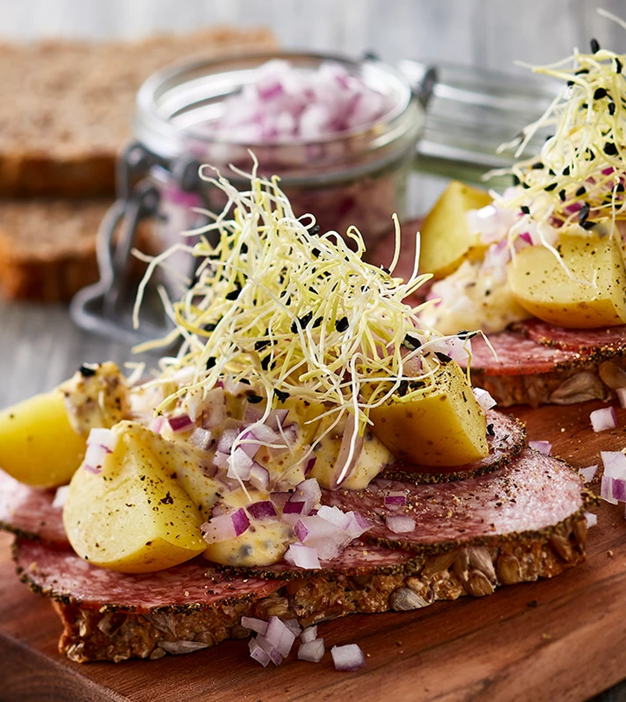 Højtbelagt smørrebrød med leverpostej