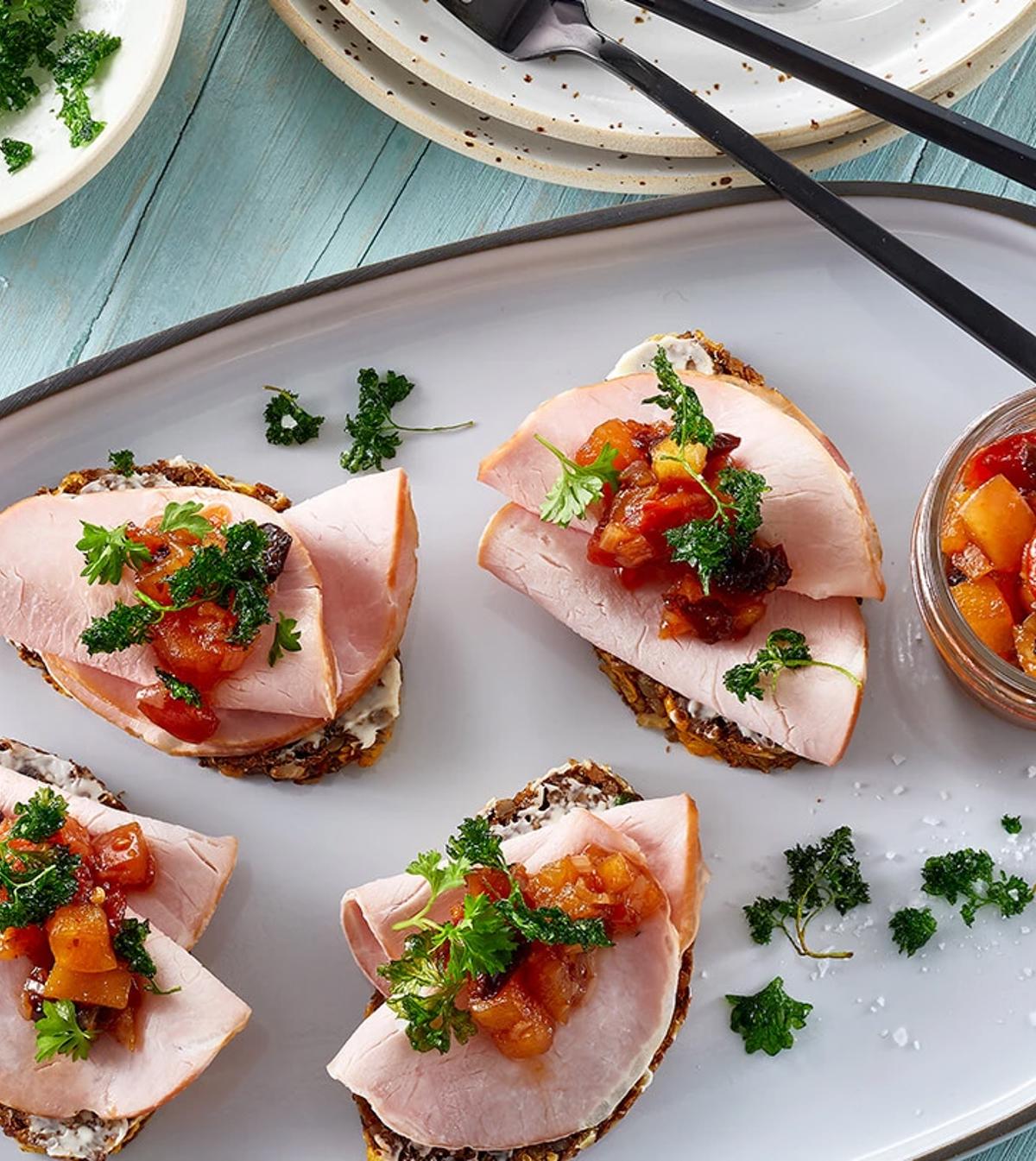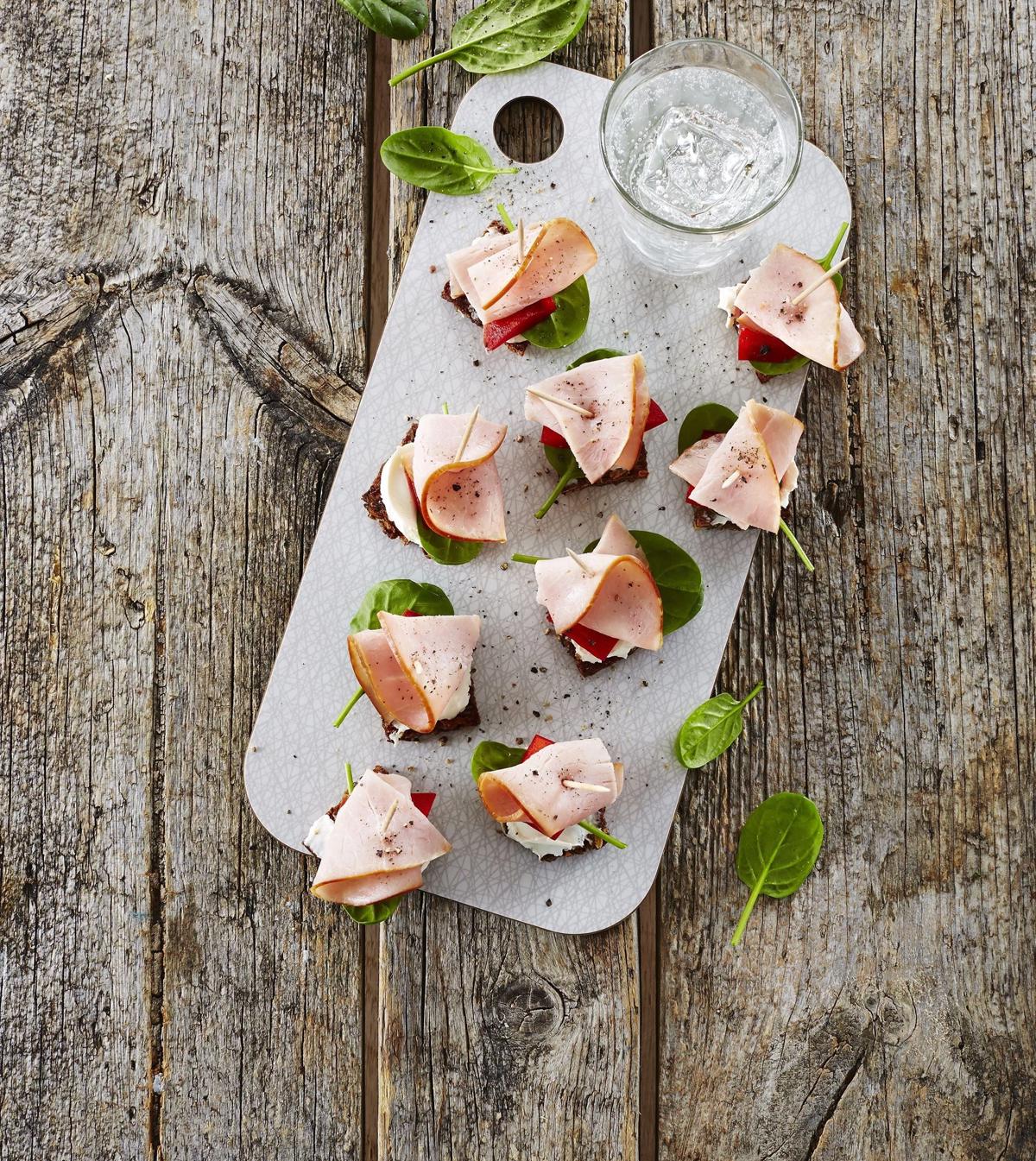Rugbrødssandwichbolle med hamburgerryg og tzatziki