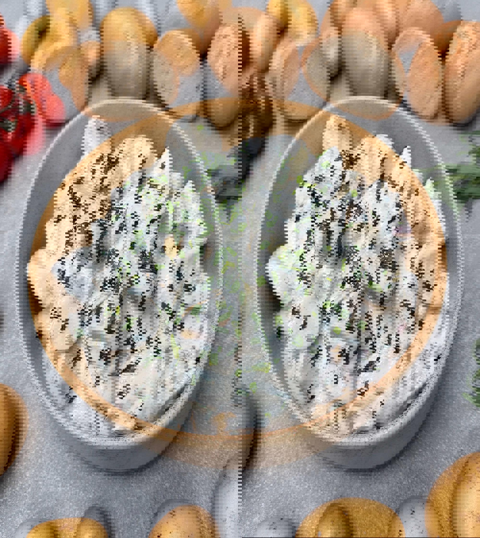 Grillet Cheddar & Chili pølser med kartoffelsalat og hvidløgsbrød