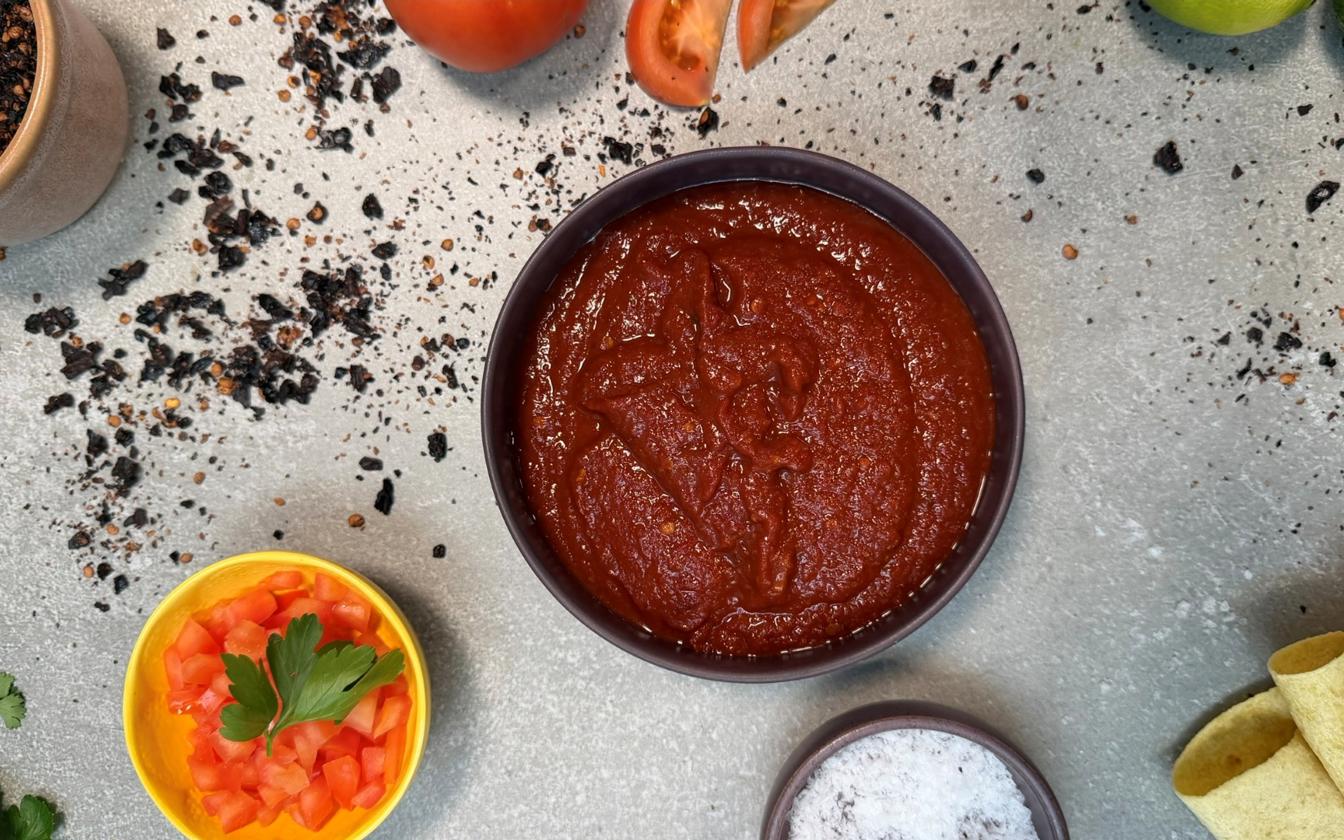 Salsa roja er en klassisk mexicansk salsa med en dyb, fyldig og let røget smag. Den laves ved at riste tomater, chili, løg og hvidløg, hvilket fremhæver sødmen og giver salsaen en intens karakter. Kombinationen af friske ingredienser og tørrede chilier skaber en perfekt balance mellem varme, syre og fylde. Salsa roja er utrolig alsidig og passer perfekt til tacos, kødretter og grillmad, hvor den tilfører både styrke og dybde. Den kan justeres i styrke alt efter, hvor meget chili du bruger, og om du vælger den klassiske version eller en hurtigere express-variant.Den hurtige version er ideel, når det skal gå stærkt, men stadig være fyldt med smag – perfekt til hverdagsmad.