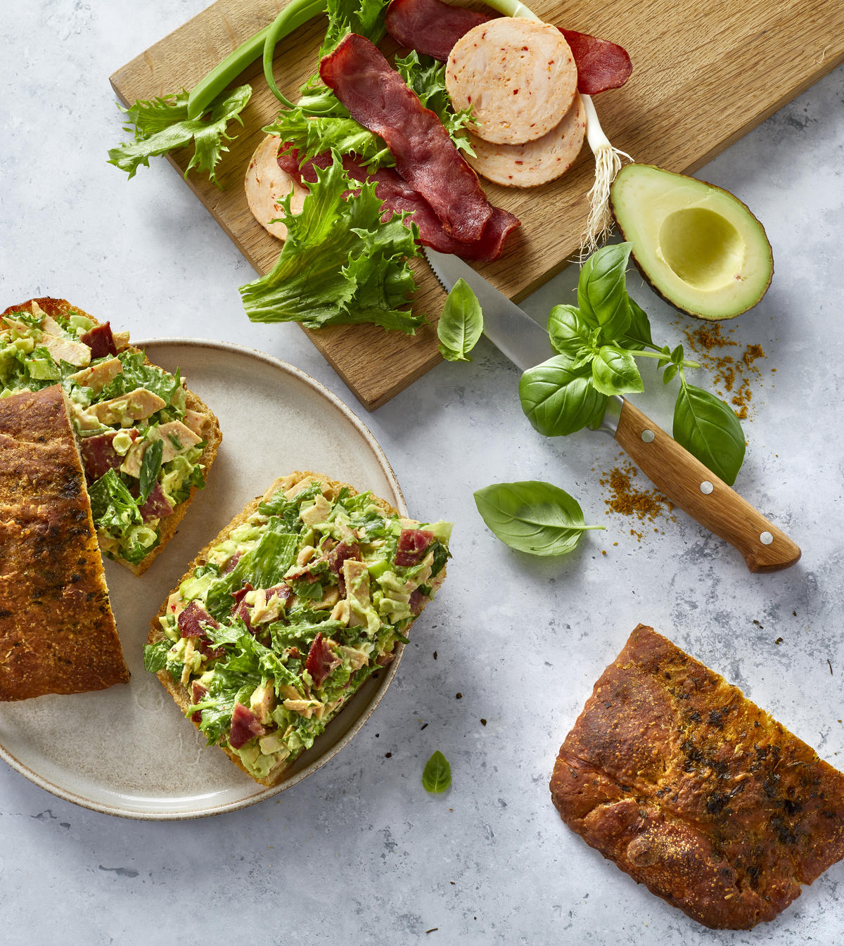 Sandwich med hønsesalat og kalkunbacon