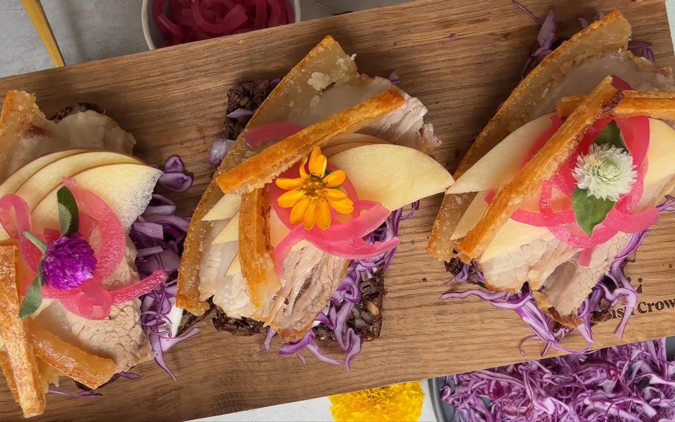 - Brug gerne rester fra aftensmaden – flæskesteg smager fantastisk kold og er nem at skære i fine skiver. Har du sværen med, så lun den kort i ovn eller airfryer for at få den sprød igen, inden du lægger den på brødet.