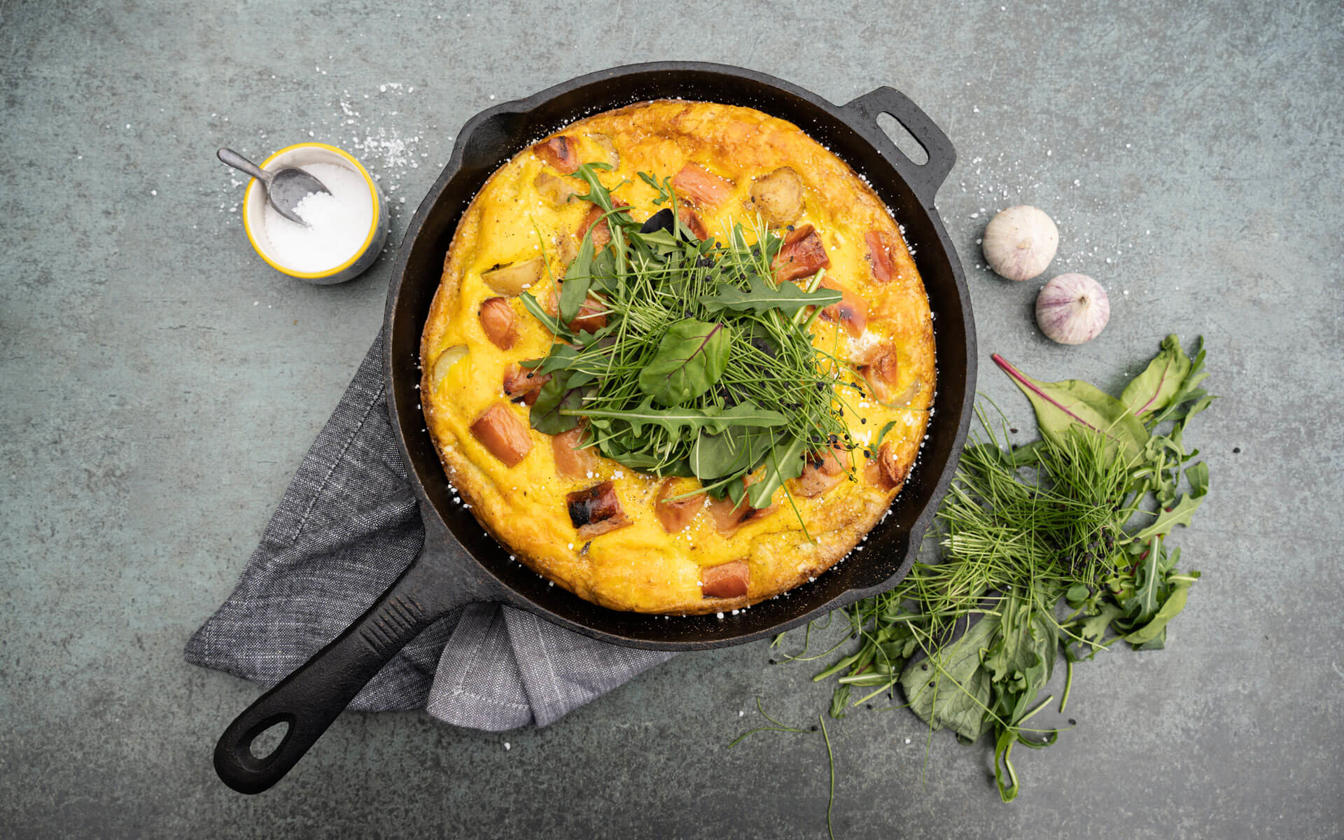 Hvis du skulle have en rest hamburgerryg, du skal bruge i stedet for, så find vores opskrift på den version af opskriften her: Spansk inspireret tortilla med hamburgerryg.