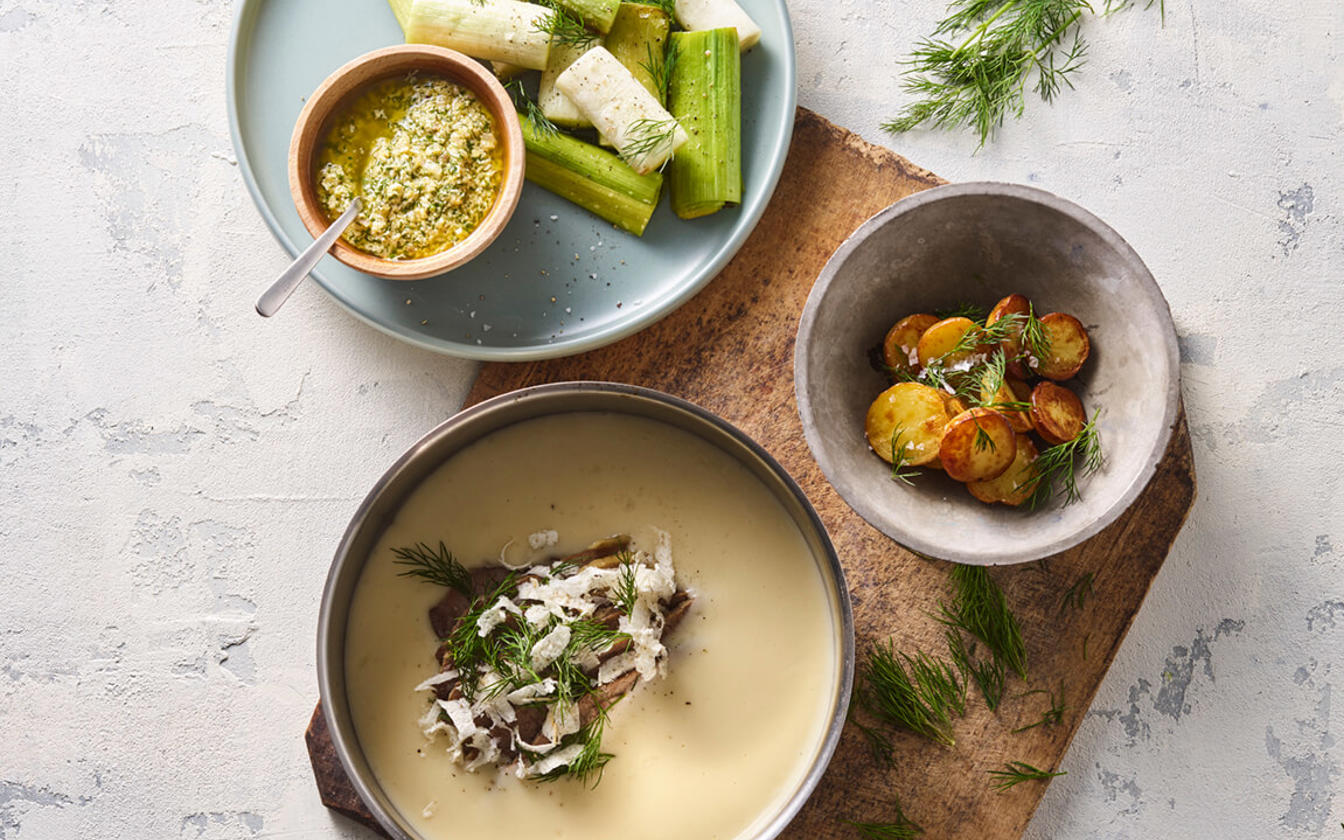 8 dlaf suppen fra oksebrystet (skummet og siet)