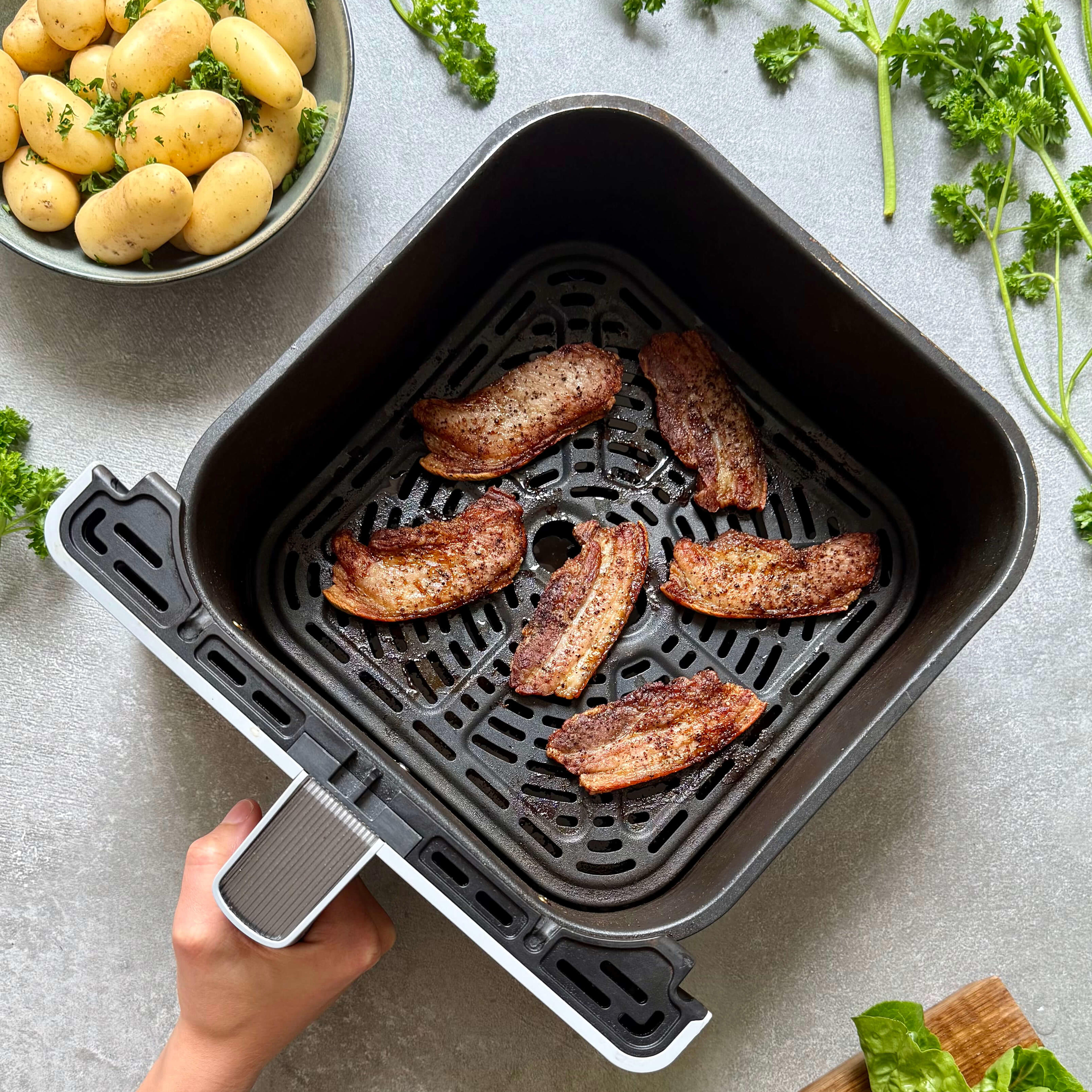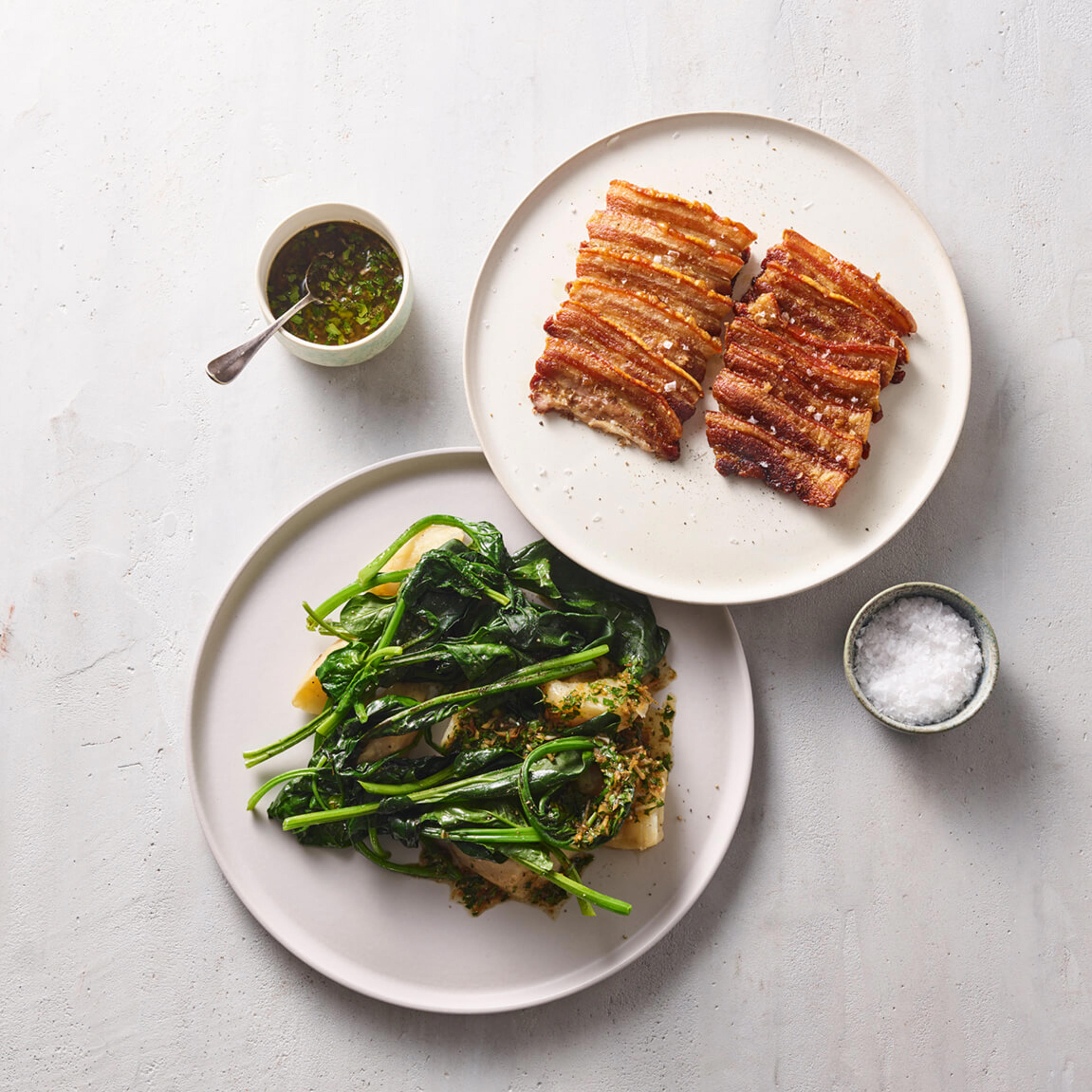 Stegt flæsk med persillesovs er en af de retter, der dufter af barndom og mormors køkken. Den sprøde skorpe, den cremede persillesovs og de nykogte kartofler - mere dansk bliver det ikke. Den salte smag af flæsk, den milde, grønne sovs og den sødlige persille danner tilsammen den helt rigtige balance. Med ovnmetoden slipper du for at stå ved panden, men får stadig flæsket helt sprødt og saftigt. Det er nemt, hyggeligt og lige, som det skal være.