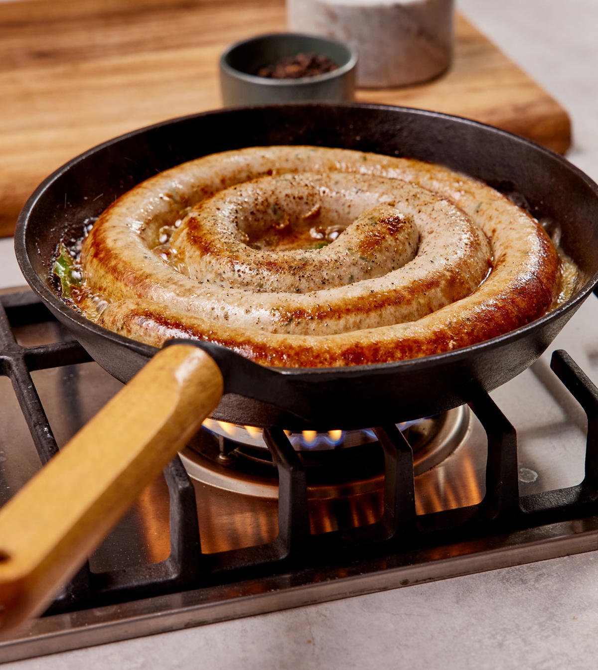 Stegt medister over bål med tilbehør