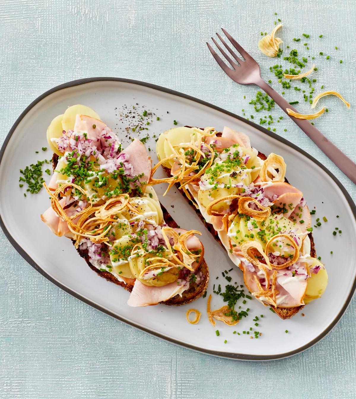Denne lækre opskrift på surdejsbrød med vegetarisk pålæg og karryhummus er den perfekte vegetariske frokost.
