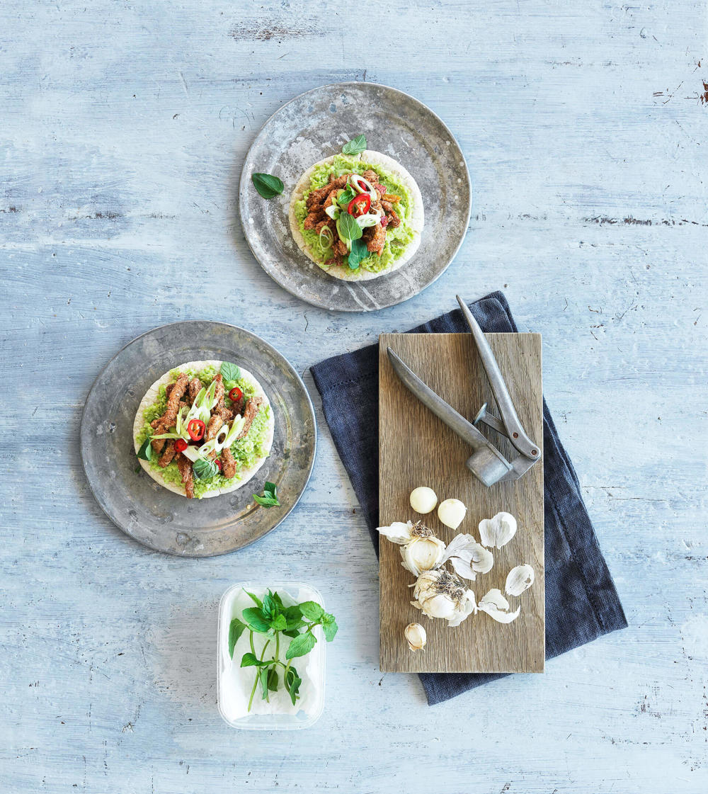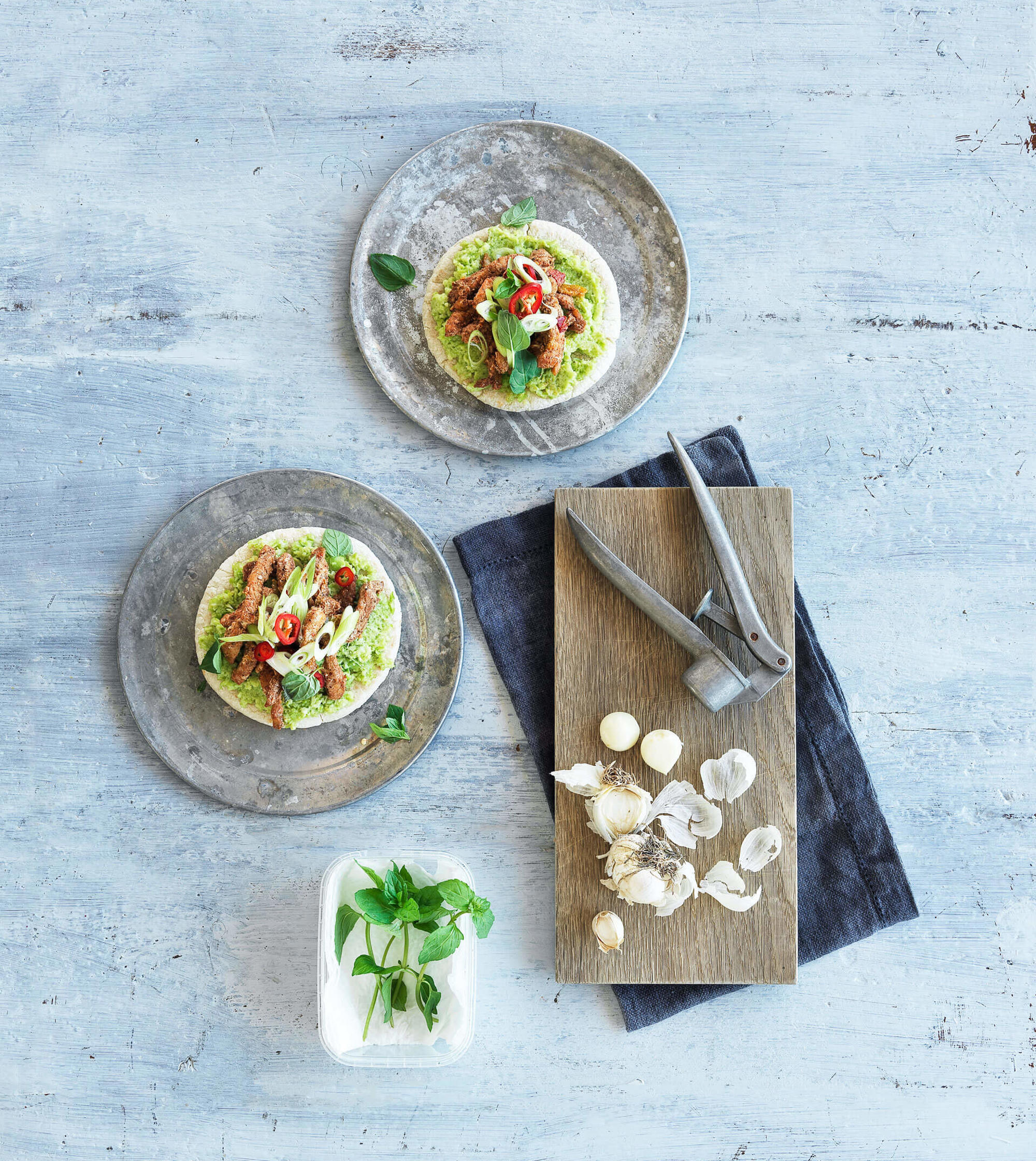 Lav hjemmelavede brødcroutoner af en rest brød. Du kan bruge franskbrød, flutes, rugbrød, boller mm. Riv brødet i mindre stykker og fordel brødstykkerne på en plade med bagepapir. Dryp brødet med olie eller spray med en fedtspray. Drys med groft salt og bag brødstykkerne sprøde og gyldne i ovnen ved 225 grader i 10-12 min. Se vores opskrift på hjemmelavede brødcroutoner.