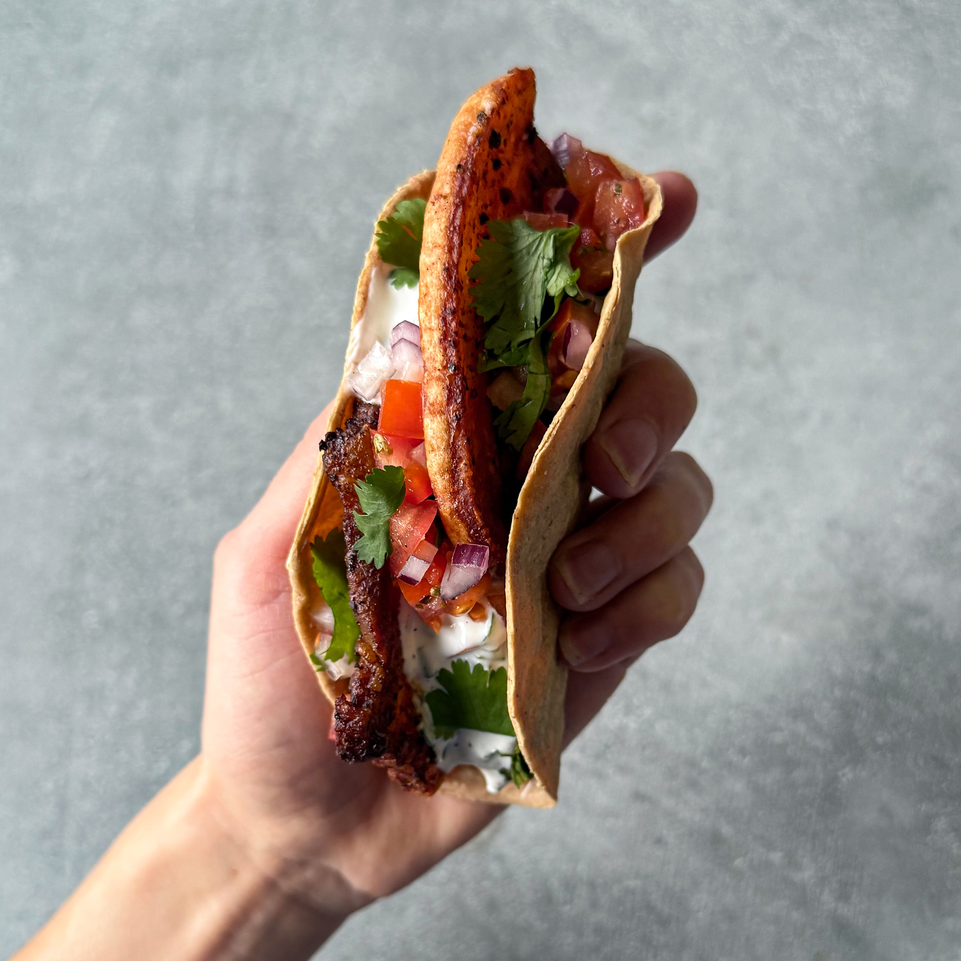Fuldkornswrap med hamburgerryg, kalkunbacon og spinat