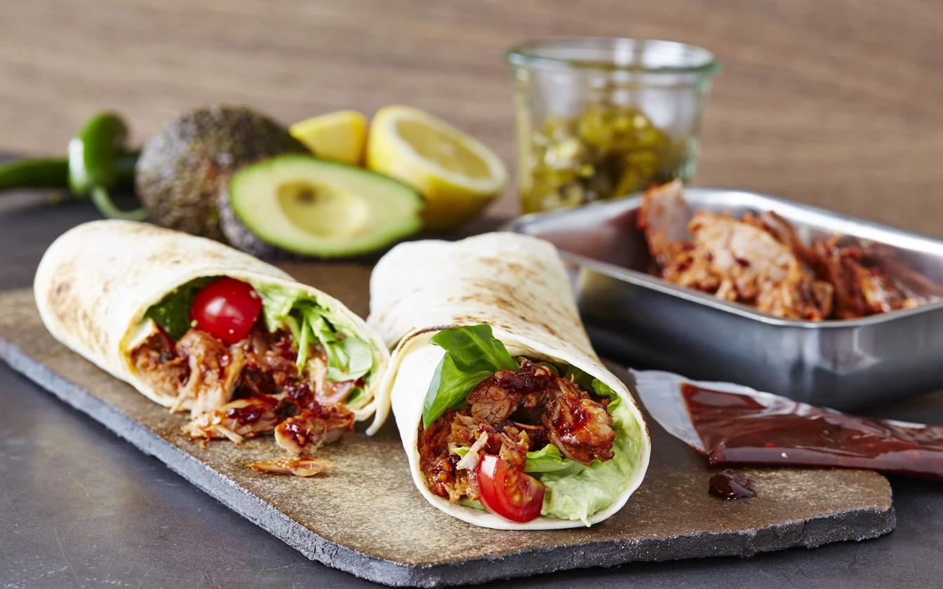 Dette er blot vores syn på en wrap med pulled pork, men i virkeligheden kan wraps fyldes med lige det fyld, du har lyst til – eller med det du har i køleskabet, som synger på sidste vers.