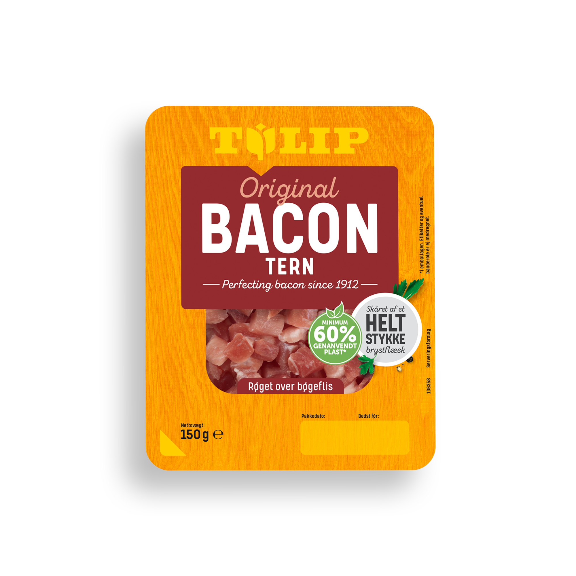 100 gDenne Tulip Friland Bacon i skiver er lavet af tørsaltet bryst af gris fra danske Frilandsgrise. Fordi denne bacon er tørsaltet, kan den steges mere sprød end traditionel bacon. Samtidig sprutter den mindre på panden, fordi saltningen har trukket vandet ud af kødet. Anvend skiverne som traditionel bacon til røræg, i salaten eller svøb skiverne omkring grøntsager eller kød.