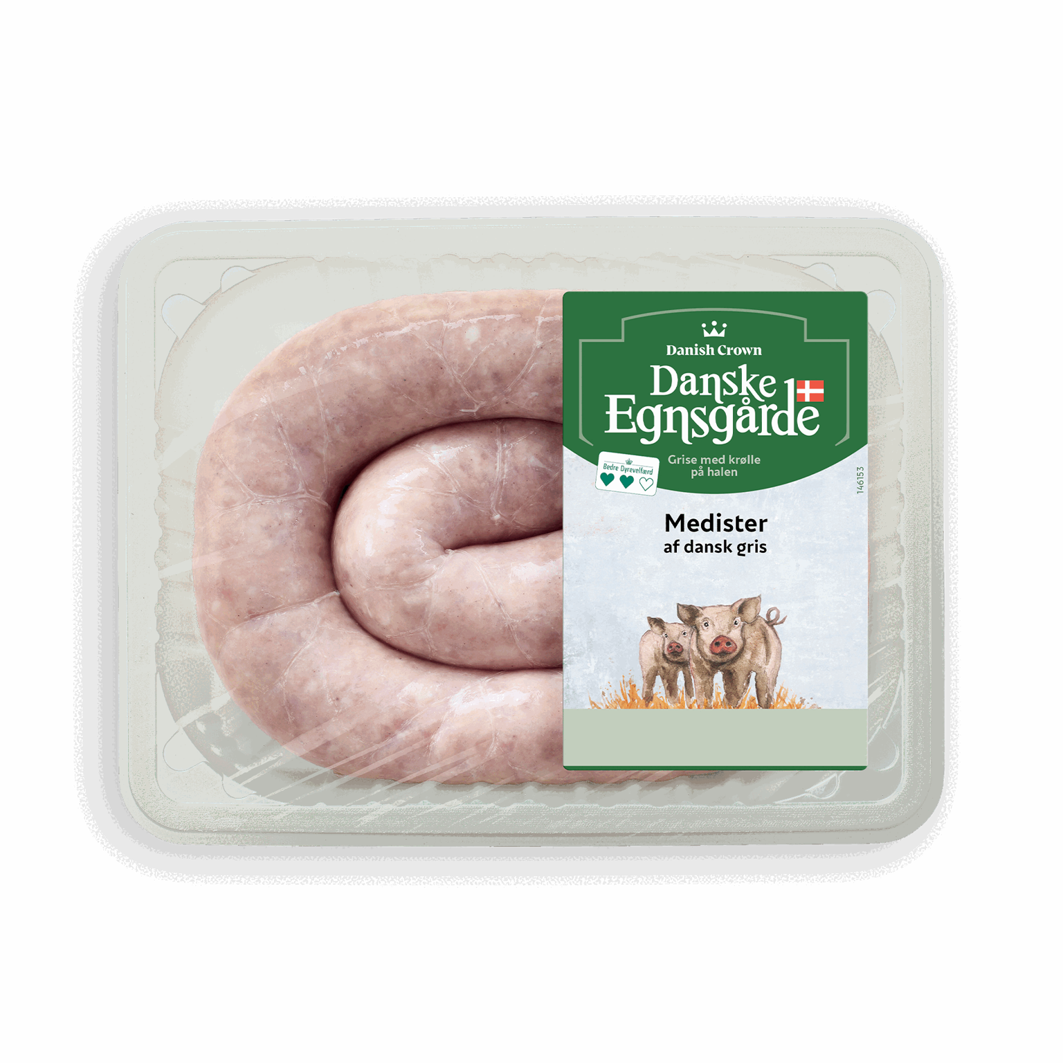 Medister fra Danske Egnsgårde er 100% dansk, fra grise født og opdrættet hos udvalgte landmænd, der driver landbrug med hjertet på rette sted i forhold til bedre dyrevelfærd for deres grise. Søerne går frit, og der stilles krav om, at søerne tildeles 30 % mere gulvplads end ved konventionelle staldgrise.