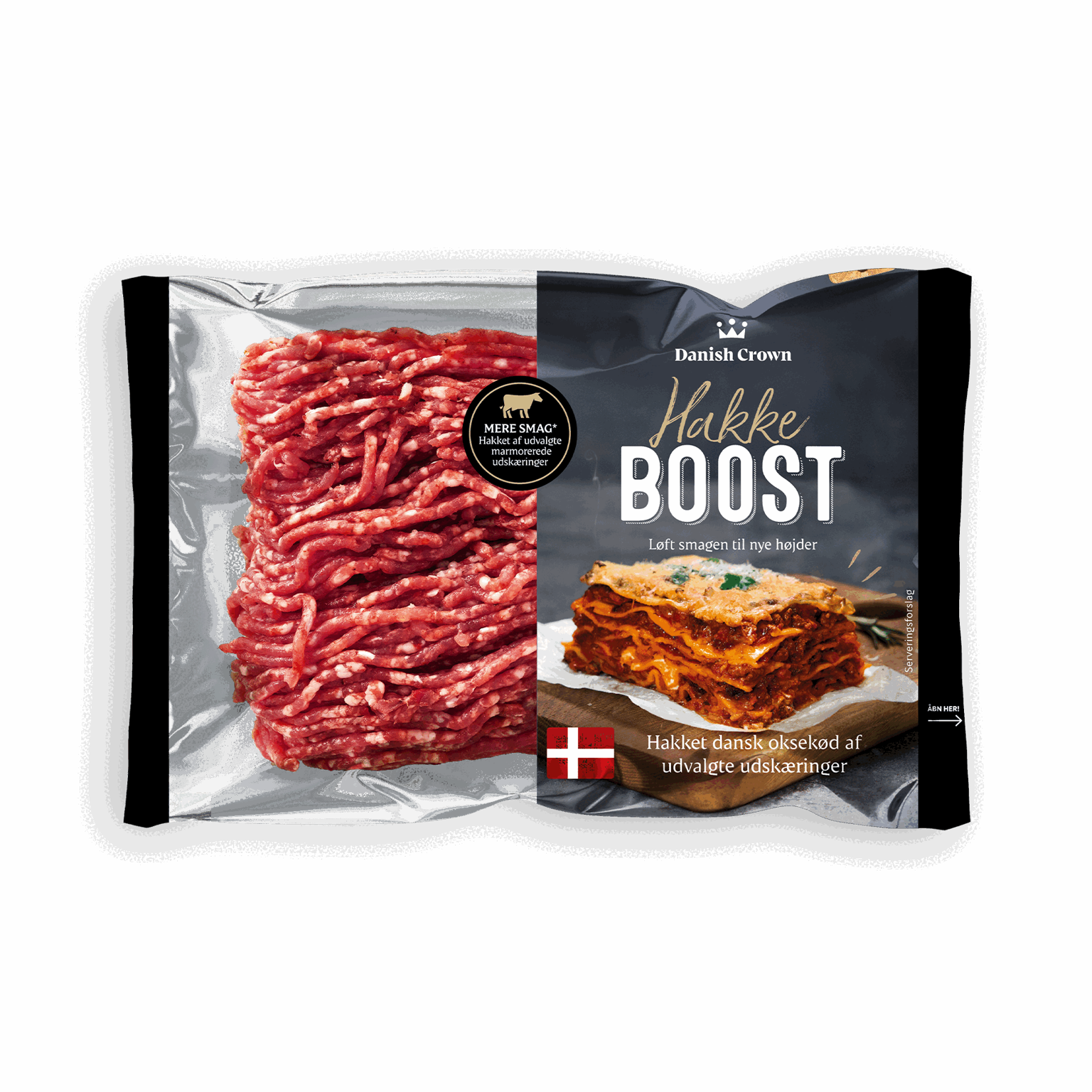 1 stkBOOST dine favorit-retter! Kødet her er hakket af hele håndplukkede udskæringer. De er valgt for deres marmorering, som sikrer smagfulde resultater på tallerkenen. Vil du booste dine favoritter, fx lasagnen, kødsovsen eller den klassiske hakkebøf, har du den helt rette pakke i hånden.