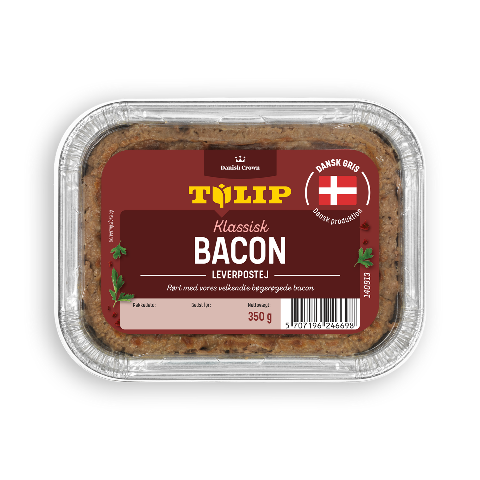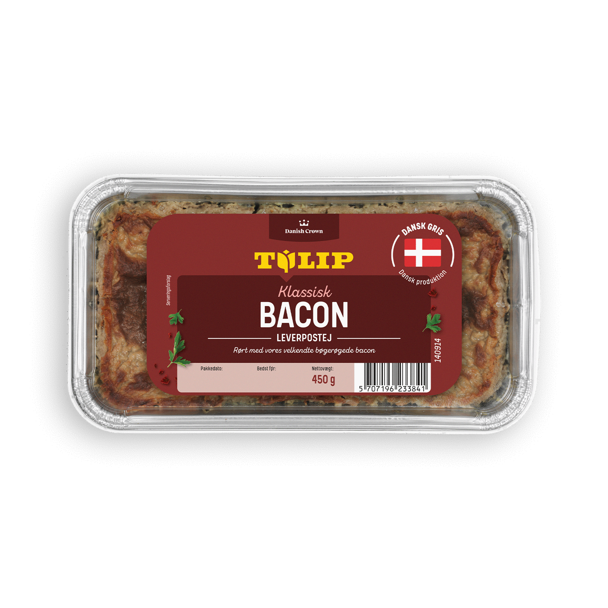 200 gTulip Julepostej er rørt med bacon og fløde, der giver den helt rigtige smag og stemning på et veldækket julebord - uanset om den serveres kold eller varm