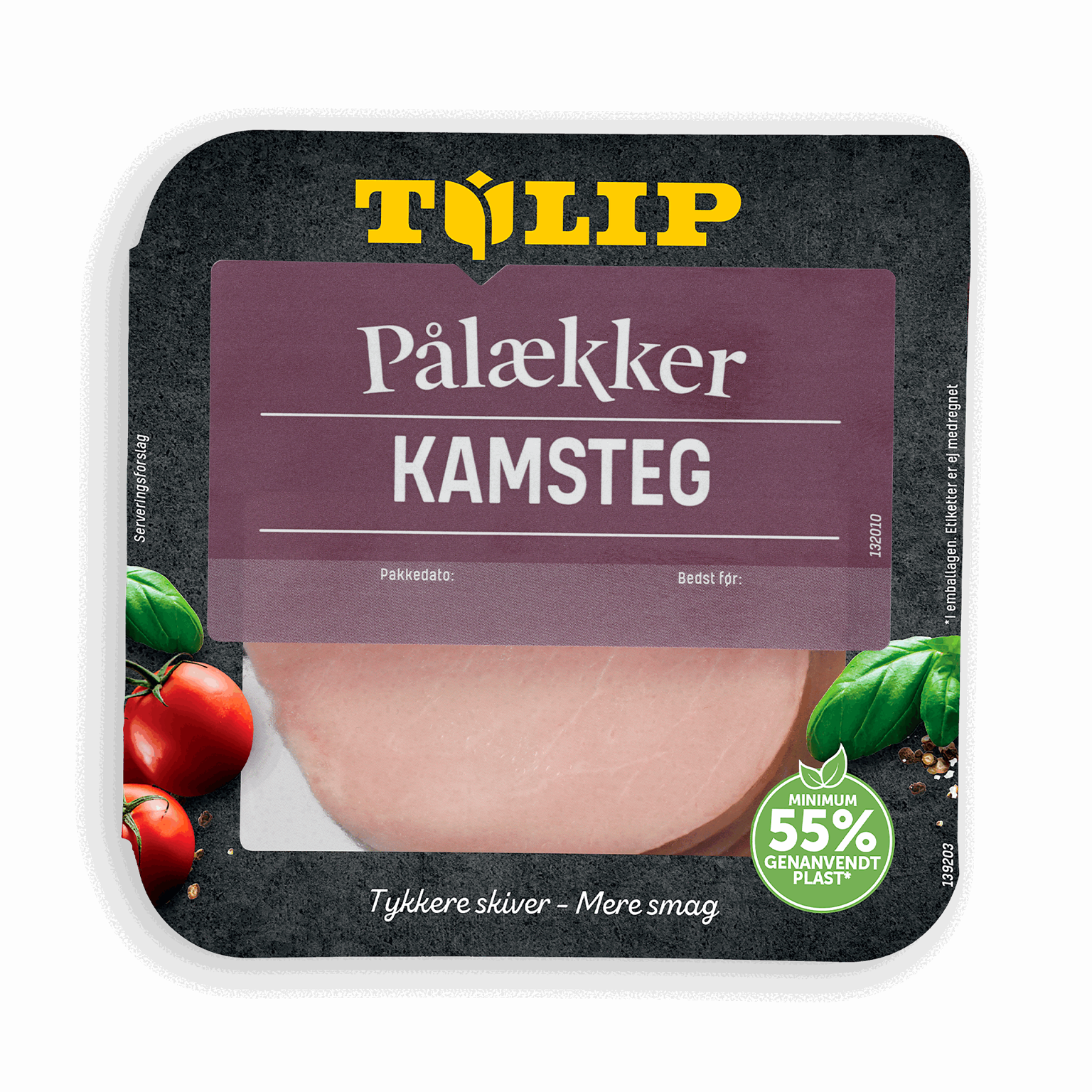 80 gTil Tulip Pålækker Kamsteg bruger vi saltet grisekam. Vi koger den ved lav temperatur i flere timer - det sikrer den fine smag og lækre kødstruktur. For at give den bedste smagsoplevelse skærer vi Tulip Pålækker Kamsteg i tykke skiver.