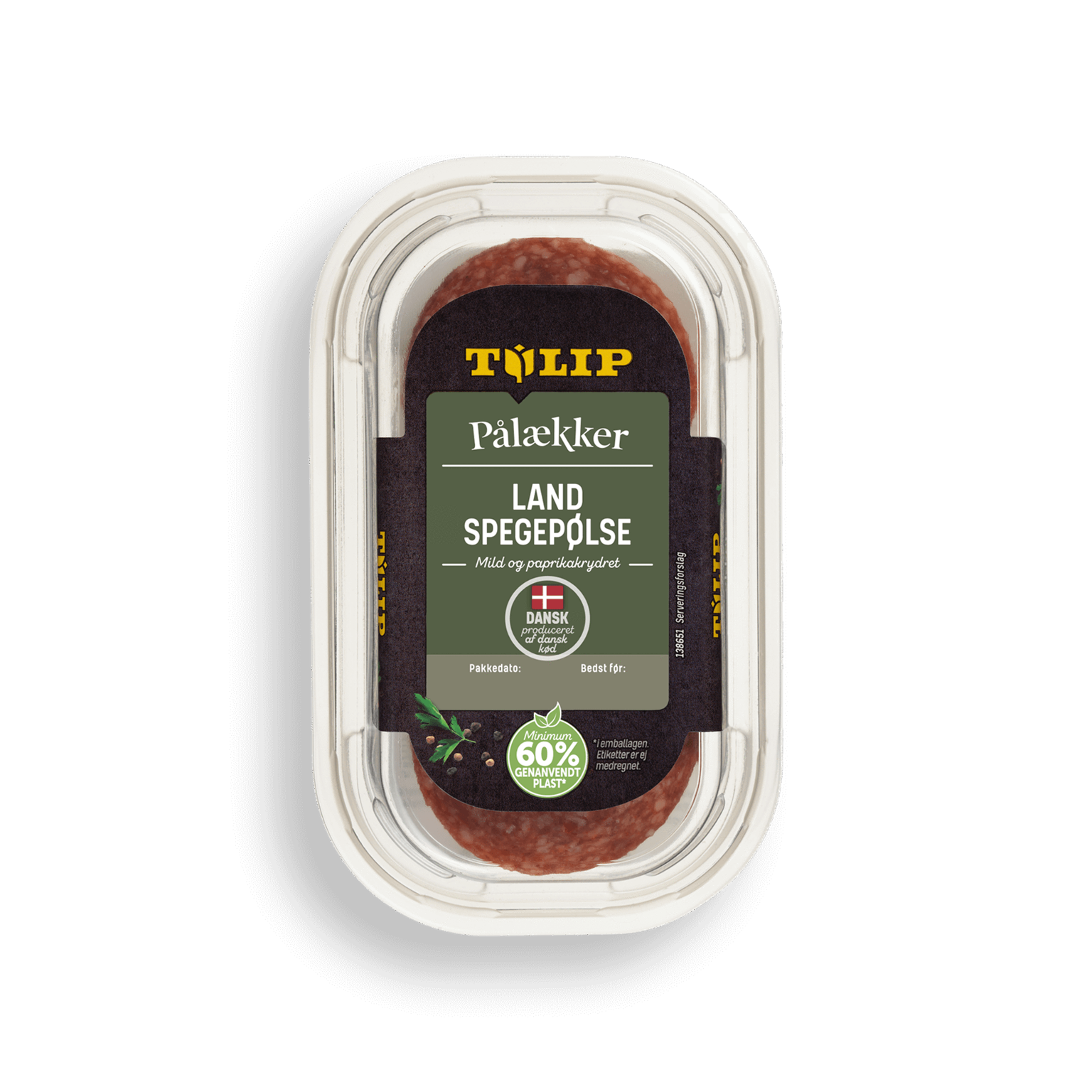 125 gTulip Pålækker Landspegepølse er lavet med udgangspunkt i godt dansk kød og en traditionsrig opskrift - det bedste fundament for en spegepølse af høj kvalitet. En klassisk mild og langtidstørret spegepølse med et pift af paprika, og selvfølgelig skåret i tykkere skiver.