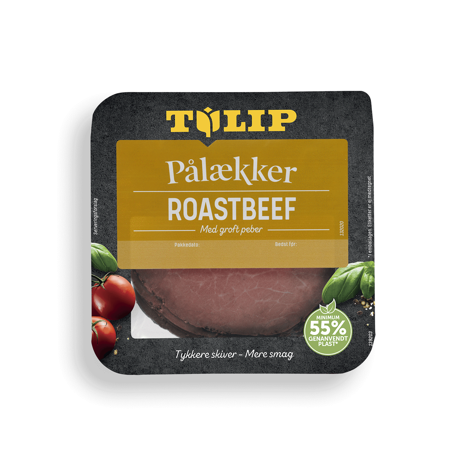 60 gTil Tulip Pålækker Roastbeef bruger vi okseinderlår. Vi krydrer den med groft peber, og koger den til den er perfekt mør. For at give den bedste smagsoplevelse skærer vi Tulip Pålækker Roastbeef i tykkere skiver.