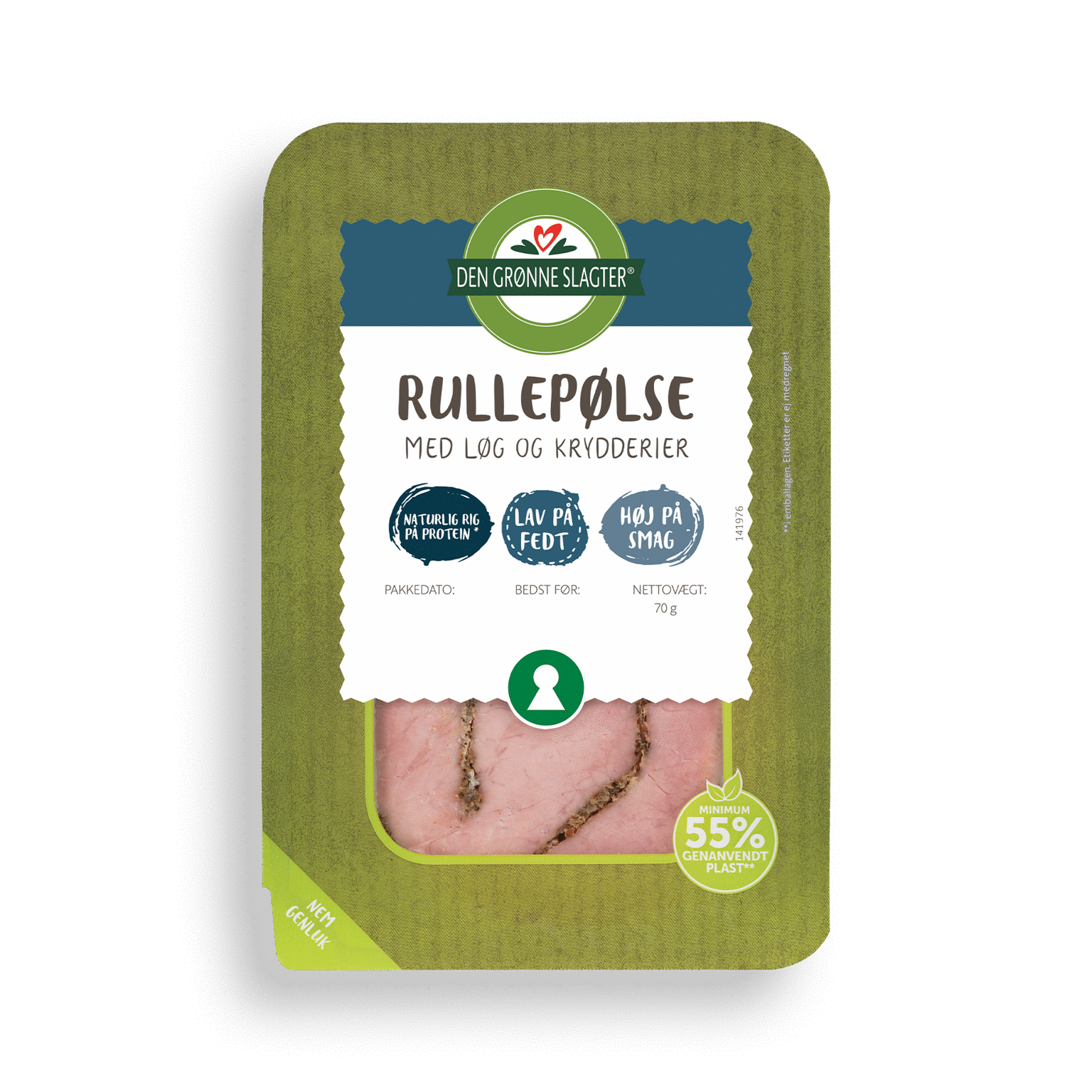 70 gRullepølse fra Den Grønne Slagter smager af mere og har et minimum af tilsætningsstoffer. Stolte, danske madtraditioner som rullepølsen skal man ikke rokke for meget ved. Så vi har bevaret den gode, krydrede smag, men skåret grundigt ned på fedtet. Faktisk skal du spise 7 skiver Rullepølse fra Den Grønne Slagter for at komme i nærheden af fedtindholdet i den traditionelle rullepølse. Så mon ikke du kan tillade dig en ekstra skive eller to på fredagsmadpakken?