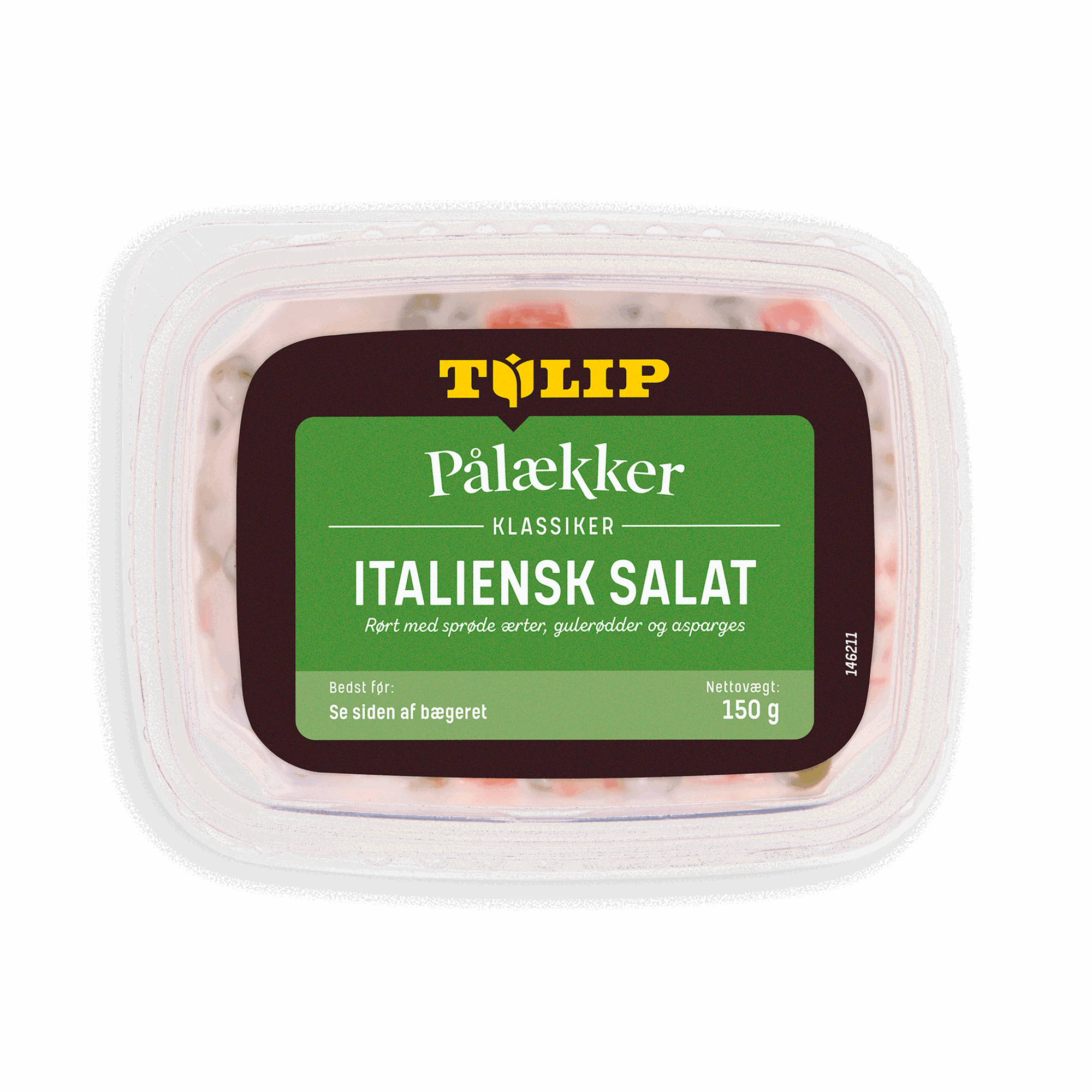 150 gTulip Pålækker Æggesalat er rørt med karry og purløg. Prøv den som topping på Tulip Pålækker Kylling med peberkant eller brug den alene på sandwichbrød.