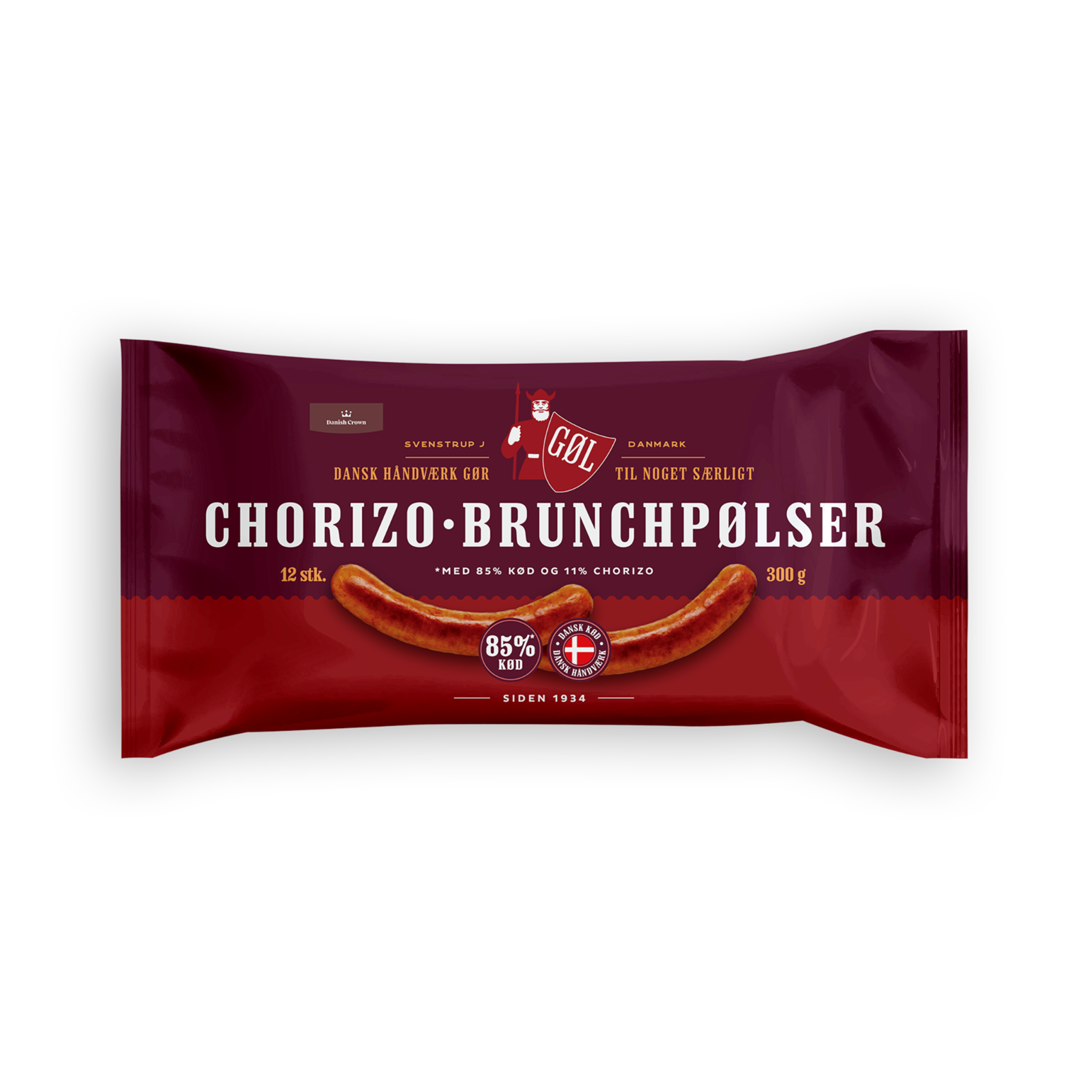 300 gGØL brunchpølser med chorizo er spanskinspirerede pølser med en dejlig krydret smag. De er ideelle på brunchbordet, hvor de skaber en lækker kontrast til klassiske brunchretter som æg, avokado og sprødt brød. Pølserne kan også sagtens indgå i andre retter som æggekage, gryderetter eller et tapasbræt – kun fantasien sætter grænser. Læs mere om vores smagfulde brunchpølser her.