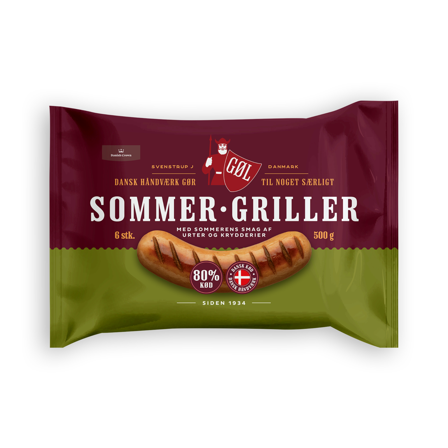 500 gGØL Sommer Griller er en krydret frankfurter, der egner sig perfekt til lune sommeraftener. Pølsen er efterhånden en klassiker i grillsæsonen, og den gør sig ekstra godt på grillen. Vores Sommer Griller er kogt og røget over bøgeflis, der er med til at give den sin karakteristiske smag. Læs mere om pølsen her.