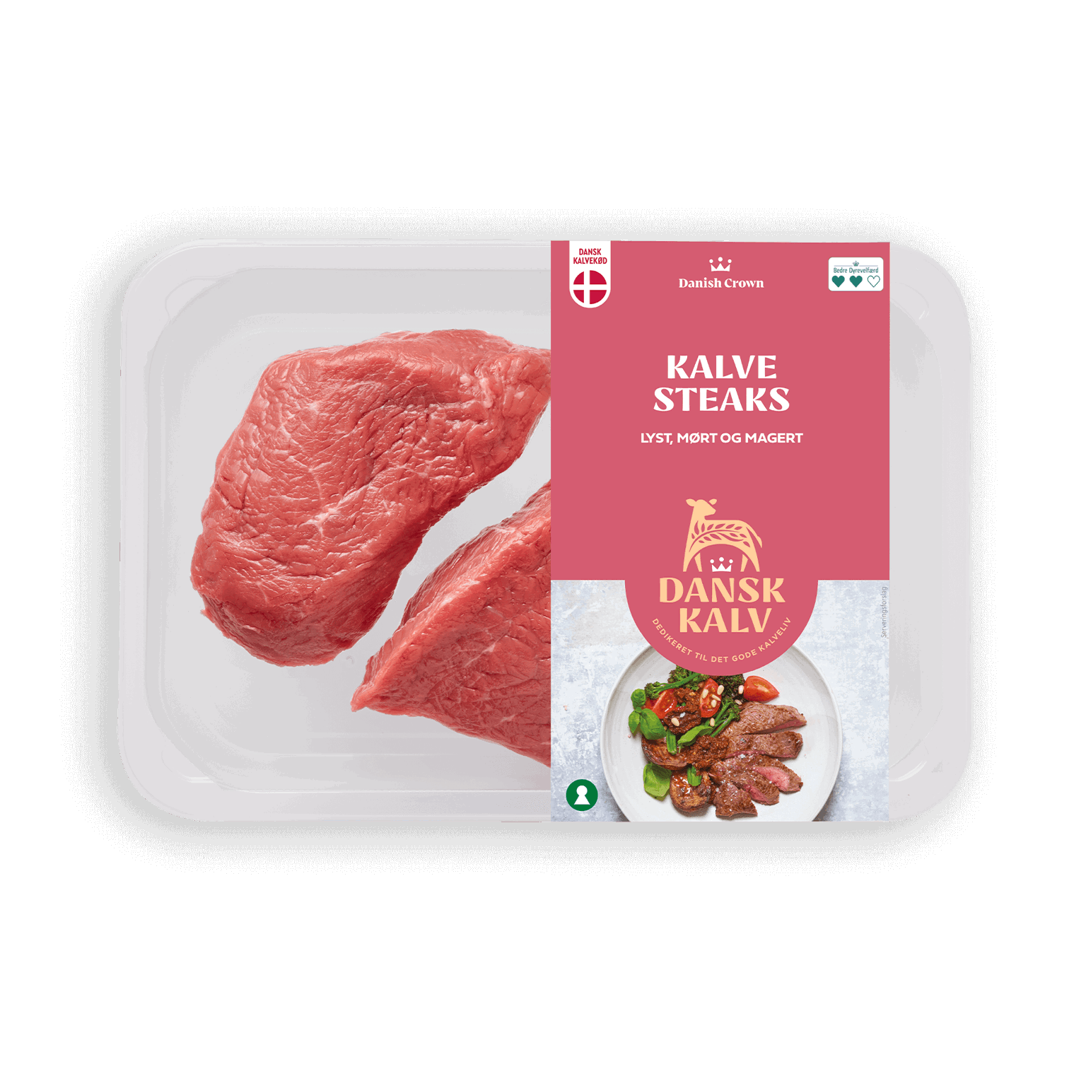 300 gDansk Kalv fra Danish Crown er dedikeret til et bedre kalveliv. Det er skabt for at give dig muligheden for at vælge dansk kalvekød med bedre dyrevelfærd og fremragende spisekvalitet. Kalvesteaks er skåret af