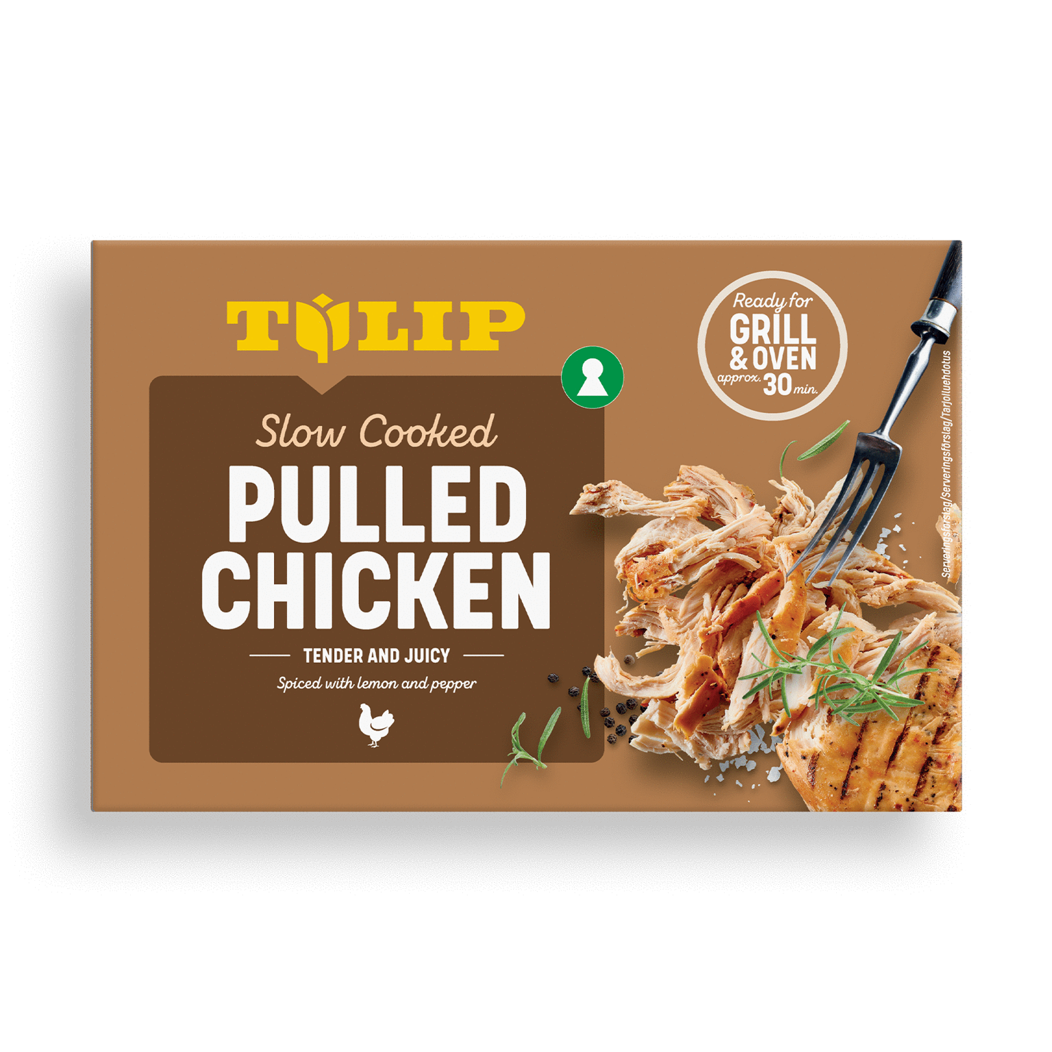 450 gOplev den nye smags sensation Tulip Slow Cooked Pulled Chicken. Vores pulled chicken er omhyggeligt krydret med specielt udvalgte krydderier og langtidstilberedt ved lav temperatur. På grund af langtidstilberedningen skal kødet kun have 30 minutter på grillen eller i ovnen, og så har du dig en saftig og mør portion kylling, der kan trevles fra hinanden med to gafler. Uanset om det er hverdag eller weekend, er Tulip Slow Cooked Pulled Chicken en hurtig genvej til nemme og velsmagende retter.