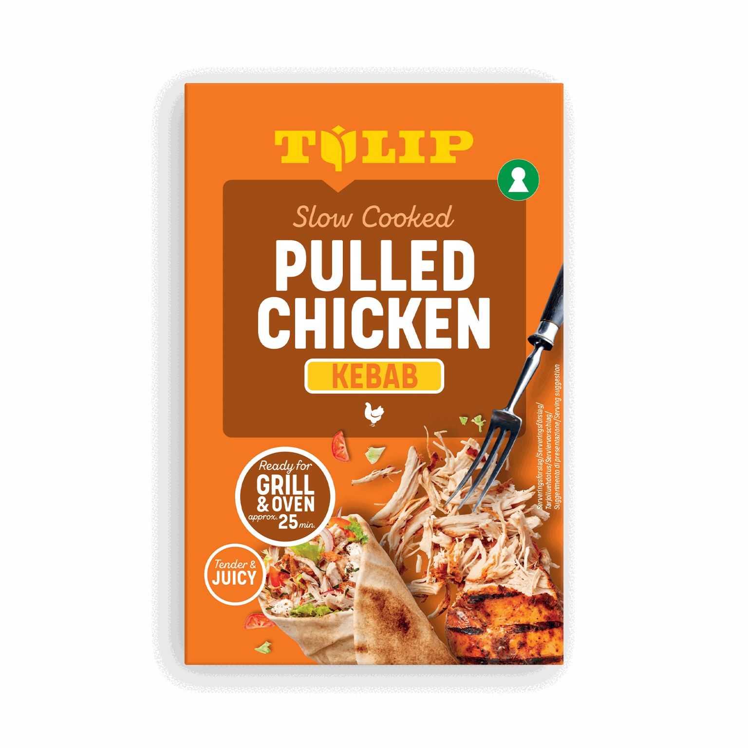 450 gTulip Pulled Chicken Kebab er et langtidstilberedt kyllingebryst, hvor saft, smag og kvalitet går hånd i hånd. Vi har marineret kødet med kebabkrydderier og langtidstilberedt ingredienserne ved lav temperatur. Denne specielle Slow Cooking-proces hjælper med at bevare smagen, mens den efterlader kødet ekstra mørt og saftigt. Prøv vores Pulled Chicken Kebab i tyrkisk brød, wraps, over pommes frites eller med en frisk salat.