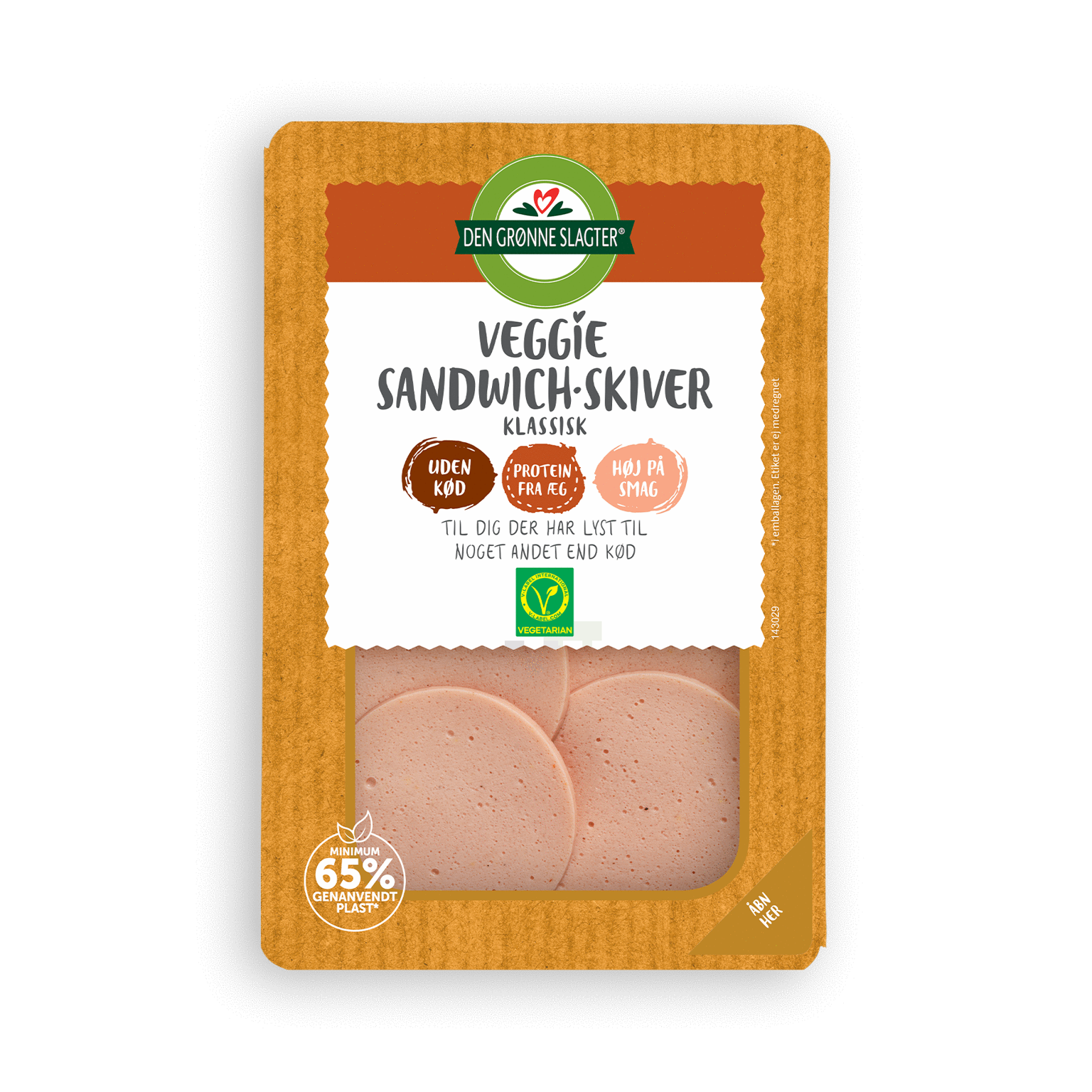 80 gDen Grønne Slagter Veggie Sandwich-skiver er pålæg til dig, der har lyst til noget andet end kød. Det er vegetarisk skiveskåret pålæg, som er lavet på en base af æggehvidepulver og rapsolie. Vores Veggie Sandwich-skiver er tykke i skiverne og er ideel i en sandwich, i en wrap eller på dit rugbrød – velbekomme!