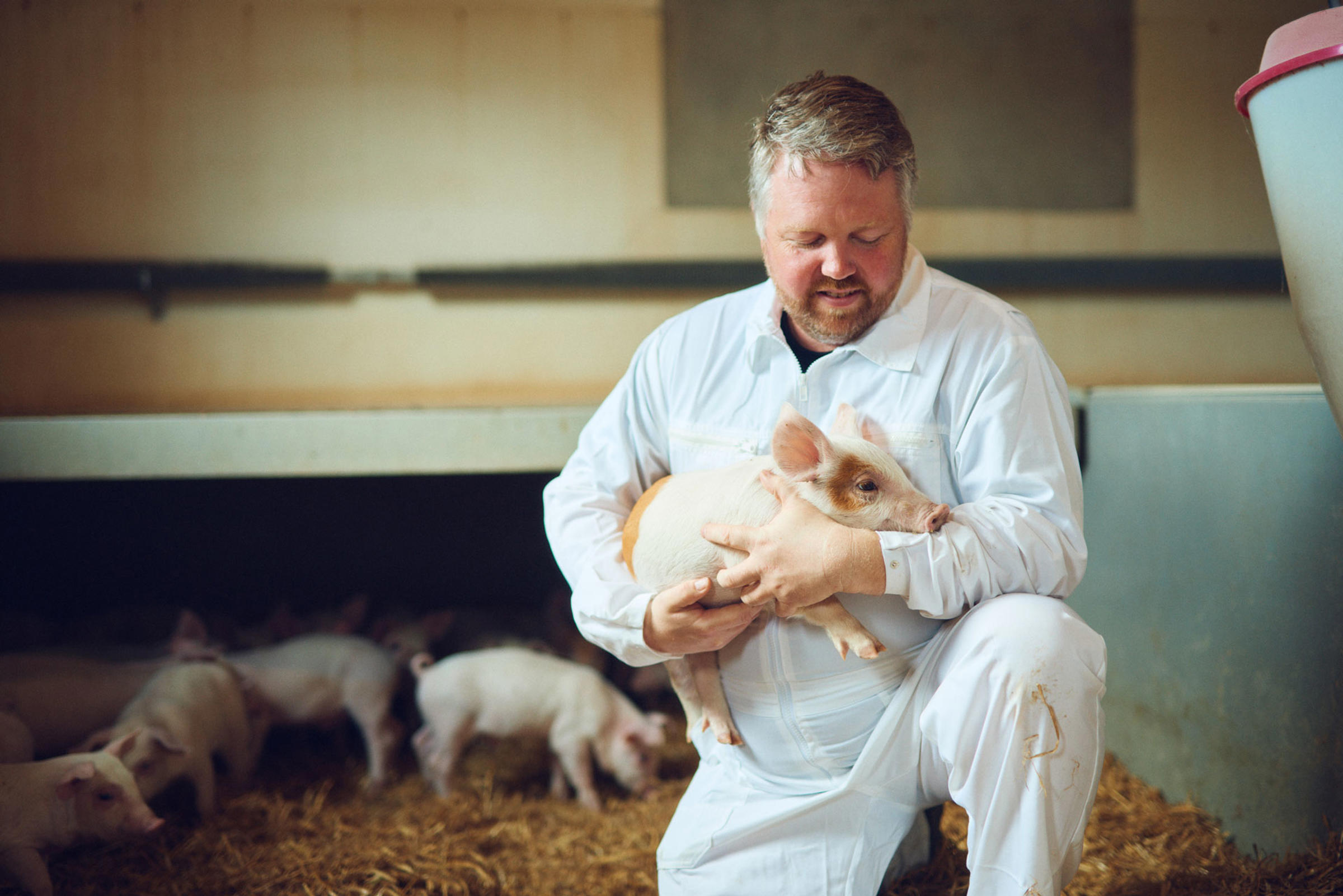 Hvis velfærd kan måles på ro, har de det godt, de grise, vi møder på staldvandringen. Søerne med et dusin grise diende på siden skæver op til de besøgende og tager sig ikke af, at en enkelt gris bliver løftet op og klappet på det silkeglatte, lyse skind. Grisenes sundhedstilstand fylder meget i arbejdet med dem, og i de kommende måneder vil der blive holdt grundigt øje med alle smågrise, så man sikrer, de vokser, som de skal og er sunde og raske. Mugning og strøelse af halm er automatiseret.