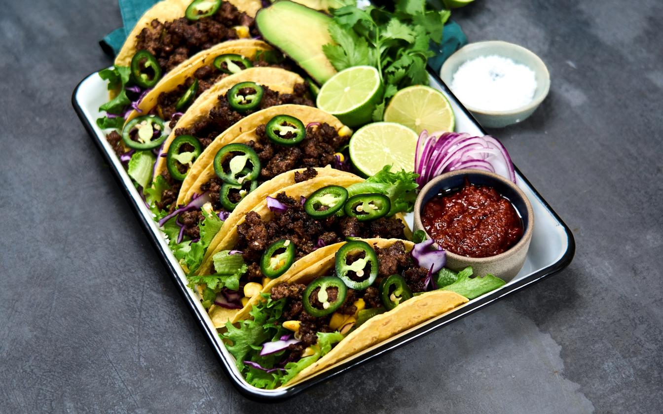 Prøv tacos med oksekød, hvor krydret kød møder friske toppings og bløde tortillas. Her får du en nem og smagfuld ret, der er hurtig at lave og perfekt til både hverdag og weekend. Det brunede kød kombineres med krydderier, tomat og et strejf af syre, som giver en fyldig smag. Sammen med avocado, majs, koriander og lime får du en ret, der både er frisk og fuld af smag i hver bid. Tacos er oplagte, når maden gerne må være uformel og nem at samle ved bordet – og hvor alle kan tilpasse deres egne favoritter.