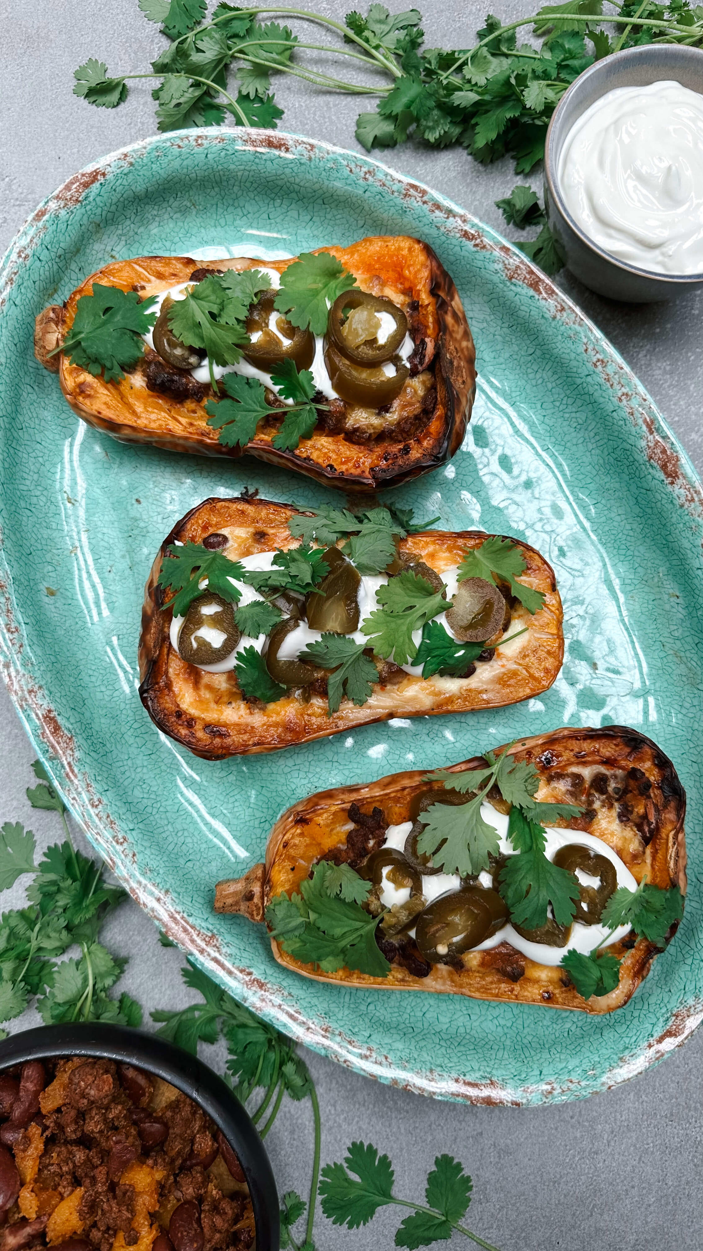 Butternut squash er også fremragende i ovnen. Skær butternut squashen i skiver, og pensl dem med olie og spidskommen. Bag butternut squashen i ovnen ved 200 grader i ca. 15 minutter. Servér den ovnbagte butternut squash med creme fraiche og frisk persille på toppen.